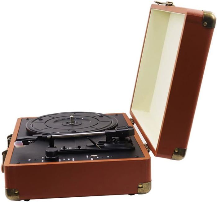 Vous allez adorer ce tourne-disque avoir une expérience agréable pour partager vos vieux disques avec vos enfants/parents/grands-parents/amis. Caractéristiques du produit Si vous rencontrez des problèmes de qualité, veuillez nous contacter, et notre équipe de service client dédiée sera à votre service dans les 24 heures. Platine Vinyle Valise WYWL Phonographe Vintage Portable Avec Haut-parleurs Stéréo Jukebox Vinyl Nous vous présentons notre haut-parleur sans fil exquis, conçu pour améliorer votre expérience audio. Commandez maintenant et profitez d'un son et d'un style supérieurs., 1., Connectivité polyvalente : connectez facilement votre équipement auxiliaire au port LINE IN de notre platine vinyle en utilisant des câbles audio de 3,5 mm et profitez de la musique numérique via les haut-parleurs stéréo., 2., Capacité Bluetooth sans fil : connectez facilement vos téléphones mobiles, ordinateurs portables et autres appareils Bluetooth à la platine pour un son sans fil., 3., Conversion numérique pratique : conservez votre collection de vinyles au format numérique grâce à la sortie USB intégrée. Il suffit de le connecter à un ordinateur ou un smartphone via USB et de convertir les vinyles en MP3 sans logiciel supplémentaire., 4., Design rétro intemporel : combinez mode et esthétique vintage avec le panneau décoratif en métal personnalisé de notre tourne-disque et les vis métalliques rétro, améliorant tout décor de salon., 5., Audio haute fidélité : plongez dans un son cristallin produit par les haut-parleurs stéréo intégrés de la platine vinyle pour une expérience d'écoute authentique en vinyle. vous allez adorer que ces tourne-disques aient une expérience agréable pour partager vos anciens disques avec vos enfants/parents/grands-parents/amis. Spécifications du produit : 350*255*130MM. vitesses, compatible avec 99% des disques du marché Les 4 meilleures platines vinyles avec enceintes intégrées en 2025 Doté d'une technologie avancée, ce haut-parleur dispose de multiples avantages fonctionnels. Profitez d'une qualité audio exceptionnelle avec notre haut-parleur sans fil. Avec des dimensions de 19 x 19 x 10 x 39 cm, il est parfaitement dimensionné pour s'adapter à divers espaces, tels que votre salon, salle d'étude, lieu d'affaires ou même un restaurant à thème.
