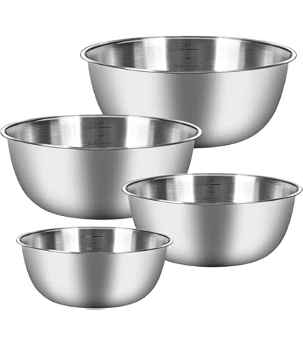 Conçu pour résister à l'épreuve du temps, ce bol est idéal pour une multitude d'utilisations quotidiennes. Améliorez vos indispensables de cuisine avec le Set de Bols à Mélanger Triple de Chef Aid. Conçu pour répondre à tous vos besoins culinaires, cet ensemble polyvalent comprend trois bols de tailles différentes-2,5 litres, 2 litres et 1,5 litre-idéaux pour mélanger, préparer et servir Que vous prépariez une salade, mélangiez des ingrédients pour une pâtisserie ou serviez un repas, notre bol est le choix parfait pour toutes vos activités de cuisine. Que vous soyez un chef amateur ou un professionnel, ce bol répondra à vos besoins avec excellence et style. POLYVALENT : Conçu pour la cuisine, ce bol est multifonction et idéal pour diverses utilisations dans et autour de la maison Bol à Mélanger Inox Bol Acier Bol à Mélanger Chef Aid Acier Inoxydable 3,8L - 30cm - Compatible Lave-vaisselle Bol Mélanger Acier Inox Bol Patisserie Fabriqué en acier inoxydable de premier choix, ce bol ne retient ni les odeurs ni les goûts, garantissant ainsi que vos préparations restent pures et savoureuses. BOL À MÉLANGER : La sélection de bols à mélanger Chef Aid est la solution idéale pour de nombreuses tâches lors de la préparation de repas faits maison Parfaits pour mélanger, combiner et conserver les aliments, ils sont également adaptés pour le réfrigérateur et le congélateur TAILLES ET DIMENSIONS : Ce bol a une capacité approximative de 3 litres et mesure 26 cm de diamètre, parfait pour préparer des portions de taille moyenne à grande pour une petite famille Sa finition brillante et élégante ajoute une touche de sophistication à votre cuisine, tout en étant extrêmement facile à nettoyer. 5 pièces bols à mélanger, saladier bol à en acier inoxydable avec Polyvalent et pratique, ce bol est doté de bords arrondis pour une manipulation aisée et sécuritaire. Bol à mélanger - Set de 5 - Acier inoxydable - Bol à mélanger à salade...