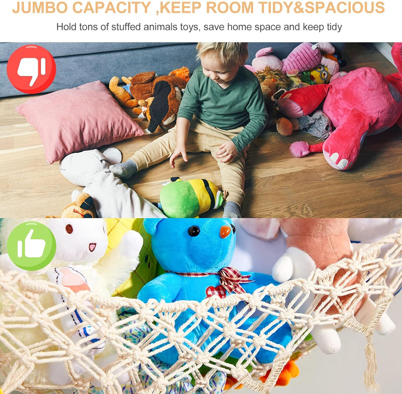 Grande capacité et grand espace : boucles de suspension plus respectueuses de l'environnement et plus stables, robustes et faciles d'entretien. Lit suspendu pour enfants : ce filet suspendu pour jouets pour enfants est composé d'un motif tissé simple, d'une corde en coton de haute qualité et d'un artisanat traditionnel tissé à la main pour plus de durabilité. Le hamac à jouets pour animaux en peluche ne se détache pas avec le temps et ne change pas de forme, ce qui est respectueux de l'environnement, sûr et durable HAMAC FILET JOUET Ursaring Plush Rangement D'angle Pour Jouets EUR 13... Ce hamac pour animaux en peluche peut être étendu jusqu'à 100 x 106 cm, de sorte qu'il peut contenir plus de jouets en peluche et ranger les jouets de votre enfant de manière ordonnée. Hamac Pour Animaux En Peluche, Rangement D'animaux En Peluche, Filet De Rangement Mural En Macramé Le hamac pour jouets suspendus est facile à installer, clouez les crochets et les ancrages muraux dans le coin de la pièce à la largeur souhaitée, accrochez le filet et vous êtes prêt à partir. Rangement de jouets multifonction : brisez le type traditionnel de rangement des jouets au sol (boîte de rangement pour jouets), économisez de l'espace au sol. Filet Tissé Main Pompons Perles Hamac De Rangement Pour Animaux En Peluche, Filet De Rangement Pour Jouets En Peluche, Peluches, Organisateur Pour Chambre D'enfant, Salle De Jeux, Maternelle, Montage Mural, Décoration De Style Hamac Peluches Murale Bohème Pas facile à desserrer ou à déformer, offre une solution sûre et durable pour ranger les jouets. com est la meilleure idée pour ranger les peluches. Si vous n'avez qu'un petit espace, vous devriez essayer ce type de rangement de jouets.