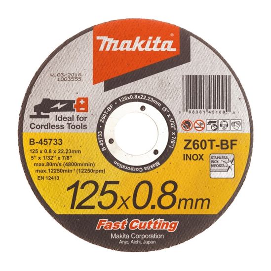 Disque Metal 125mm Disque à Tronçonner Métal A30R Makita 125 X 22.23 X 2.5 Mm Disque Coupe Métal Inox B-12239 A-85307 - Disques à tronçonner métal pour meuleuses MAKITA Disque à tronçonner métal 355 mm - Outil Maxi Pro Système Makita d'origine accessoires : disque à tronçonner 125 x 1 mm inox avec le numéro d'article : B/12239 – ean : 88381353991, Diamètre 125 mm , Épaisseur 1 mm Disques Makita B-12239 à tronçonner 125 mm