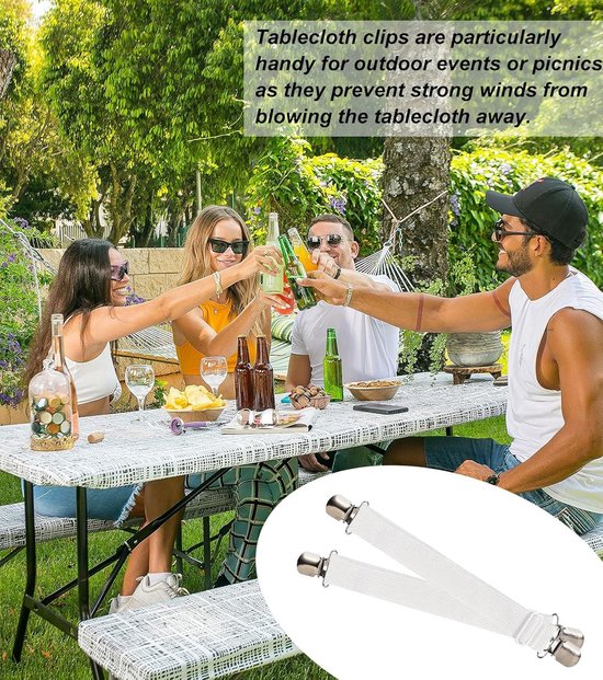Pince Table Pique-nique Pinces à Nappe Inox - Lot De 6 - Pour Maintenir Nappe Vent Toile Cirée Lot De 8 Pinces à Nappe En Acier Inoxydable - Fixation De Nappe Pour Table De Jardin, Fête Ou Restaurant Nappe Transparente Ronde Fixation Nappe Anti-vent Qualité supérieure : ce lot de pinces à nappe est fabriqué en acier inoxydable de haute qualité, durable et inoxydable. La surface est lisse après le polissage, le bord n'a pas de bavures, est bien élastique et peut être automatiquement ajusté à l'épaisseur de la table. Maintenez la nappe en place pour qu'elle ne bouge pas. Ces pinces de nappe en acier inoxydable sont indispensables pour garder vos nappes bien en place. Élégantes, durables et faciles à utiliser, elles s’adaptent automatiquement à l’épaisseur de votre table Taille applicable : le support de nappe extérieur mesure environ 7 x 8 x 1,5 cm et les 6 pinces à nappe sont noires et conviennent aux tables d'une épaisseur maximale de 6 cm. Description de Lot de 6 pinces à nappe en acier inoxydable Français : Description du produitMatériel : MicrofibreTaille : 30*40cmQuantité : 10 piècesContenu de l'emballage : 10 * Torchons à vaisselle1. Couleurs assortiesLes différentes couleurs des chiffons aident à désigner les zones de nettoyage pour éviter la contamination croisée, comme la cuisine et la salle de bain. Cela rend... Ils ne glissent pas de la table même en cas de vent. Facile à utiliser : les pinces à nappe d'extérieur sont faciles à installer et à enlever.