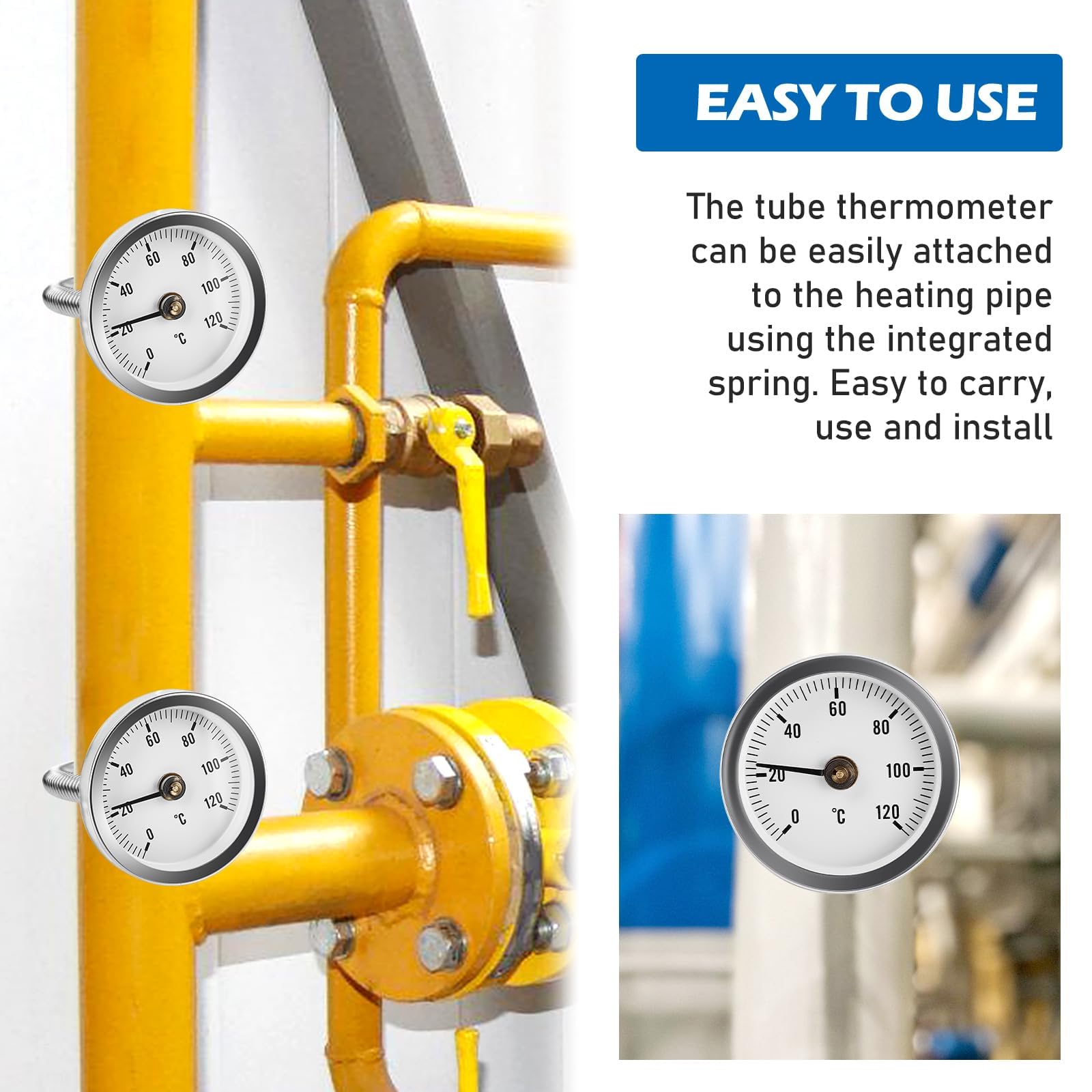 Grâce à une échelle clairement lisible, ce capteur de température de chauffage est idéal pour surveiller les circuits de chauffage, les conduites d'eau chaude ou les systèmes industriels. Le ressort à clip à l'arrière permet un montage facile et ferme sur le tuyau, sans outils supplémentaires. Ce thermomètre industriel est prêt à l'emploi et fournit directement un affichage de la température stable, même dans des conditions changeantes. Avec son ressort non extensible, le thermomètre de tuyau de chauffage peut être fixé en toute sécurité et rapidement. Thermomètre Tuyauterie Pack De 4 Thermomètres Industriels Pour Avec une plage de mesure de 0 à 120 °C et une échelle par incréments de 1 °C, le thermomètre de chauffage fournit des valeurs de température précises. Un thermomètre de chauffage idéal pour les installations de chauffage professionnelles ou un usage privé - Durable, étanche et sans entretien. Contenu de l'emballage : 4 thermomètres d'installation pour tuyaux de chauffage. Les changements de température entraînent une déformation mécanique qui est affichée avec précision sur le cadran. En tant que thermomètre de tube de chauffage, il convainc par sa stabilité et sa sécurité au quotidien. Thermomètre industriel - 0 à 120°C - Plongeur d'équerre Matériau de qualité supérieure pour une longue durée de vie : ce thermomètre de chauffage est fabriqué en acier inoxydable 304 robuste ou en fer galvanisé et offre une résistance fiable à la corrosion et à l'humidité. Le montage est simple, rapide et sûr - Idéal pour les professionnels et les bricoleurs. Scie trépan pour métal bimétal CO8 22mm Novipro Ce thermomètre d'installation est la solution idéale pour une surveillance fiable de la température sur les systèmes de chauffage, les conduites d'eau chaude et les systèmes de tuyaux industriels. Grâce à sa taille compacte (63 mm de diamètre) et à son faible poids (104 g), ce thermomètre est particulièrement polyvalent. Le principe de fonctionnement technique est basé sur un tube de chauffage bimétallique : deux bandes métalliques à réaction différente à l'intérieur se déforment lors des changements de température, ce qui donne un affichage précis sur le cadran. Principe de mesure bimétallique fiable : le tube de chauffage bimétallique fonctionne avec deux plaques métalliques solidement reliées avec des comportements d'expansion différents. Lot 4 Thermomètres Tuyauterie Thermomètre Tuyau Chauffage Lot De 4 Thermomètres De Chauffage - 0 à 120°C - Pour Tuyaux/Chaudières - Acier Inox - 63mm Termometri In Mercurio Thermomètre Bimétal Idéal pour une utilisation à long terme dans la domotique et l'industrie. Le thermomètre de tube de chauffage reste en place de manière fiable et fournit des données précises pour chaque affichage de la température dans le système de chauffage. Spécifications: Nom : thermomètre de pose tuyau de chauffage Matériau : acier inoxydable 304 ou fer galvanisé Dimensions du produit : 6,3 x 6,3 x 1 cm., Couleur : argenté. Nombreuses possibilités d'utilisation : ce lot de 4 pièces est adapté pour les conduites d'eau chaude, les réservoirs d'huile, les climatiseurs et bien plus encore.