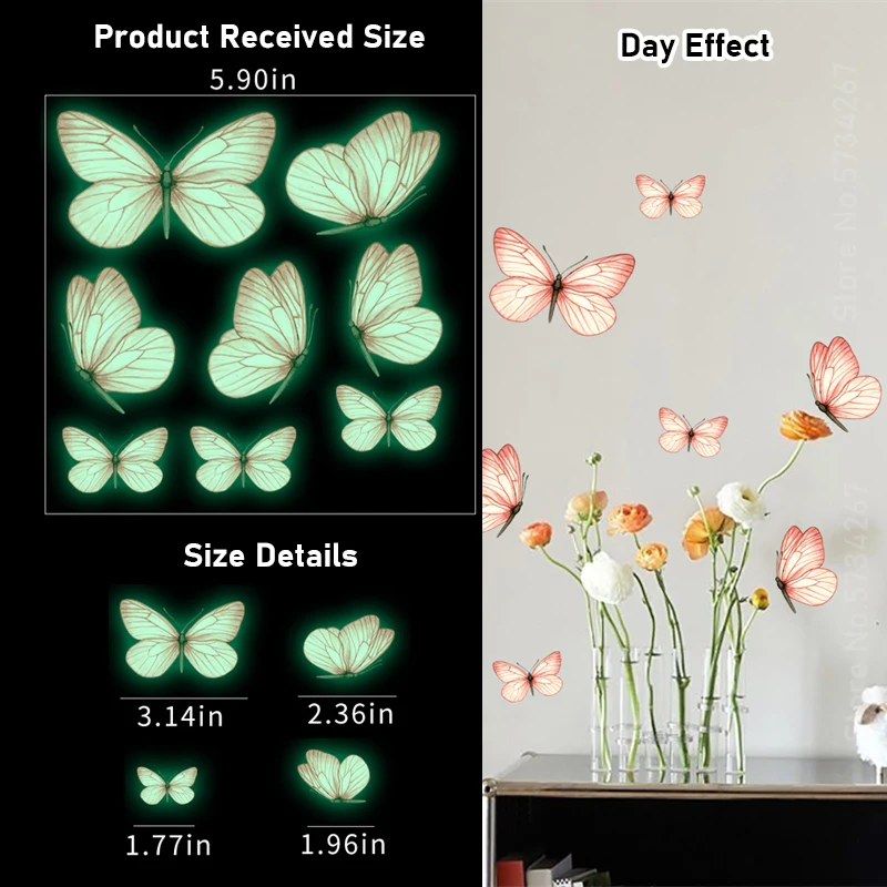 Ils s'adaptent aux murs, au verre, aux interrupteurs et à toute surface plane pour ajouter plus de plaisir à votre maison Autocollant décoratif papillon crée une atmosphère apaisante et paisible, idéal pour dormir ou se détendre. Plus le sticker mural papillon absorbe la lumière, plus il brillera longtemps Large Application: ces stickers muraux papillons ne sont pas limités aux murs. que vous souhaitiez créer une atmosphère de rêve dans la Chambre d'un enfant ou ajouter une touche de surprise à votre salon, nos stickers papillon lumineux sont idéaux. Acheter Autocollant mural papillon 3D double couche tridimensionnel papillon lumineux petite veilleuse LED lumineuse chambre à coucher lumière disposition de la scène du festival Autocollants décoratifs de papillons magnifiquement conçus pour rendre votre maison et votre vie plus riches et plus belles La nuit, ces papillons prennent vie et projettent une lumière fascinante Que ce soit une chambre à coucher, un salon, une garderie ou même un bureau, ces autocollants papillon peuvent ajouter une touche d'originalité à n'importe quel espace Stickers Muraux Chambre Autocollants Muraux Papillon Shoous D'interconnexion, Autocollants De Panneau D'interrupteur D'éclairage De Chambre D'enfants, Décor à La Maison, Autocollants De Papillons Phosphorescents Autocollants Papillons Stickers Papillon Autocollant: nos autocollants muraux papillon ont un design autocollant, il suffit de déchirer ces papillons et de les coller sur la surface lisse que vous souhaitez décorer. Stickers muraux papillons lumineux Les autocollants papillon doivent absorber complètement la lumière pour produire un effet lumineux. Les stickers muraux en forme de papillons insufflent un brin d’air estival à votre salon. Donnez des ailes à votre intérieur avec la légèreté de papillons, disponibles en 35 couleurs et de nombreuses tailles Décoration de papillons largement utilisée Les stickers muraux papillon peuvent être utilisés pour décorer la plupart des surfaces lisses telles que les murs, le verre, les portes, l'éclairage, etc. 3 tailles: environ 12 * 10cm / 4,7 * 3,9 pouces; 5,5 * 4,3 CM / 2,1 * 1,7 pouces; 3 * 2,5 cm / 1,1 * 0,9 pouces. Description du produit Envie d’ajouter une touche de glamour à votre espace? Nos stickers muraux papillons lumineux sont le choix parfait! Utilisez - les sur des miroirs, des meubles, des fenêtres ou toute autre surface lisse sur laquelle vous voulez être un point focal magique.