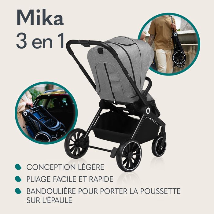AMORTISSEMENT: L'amortissement dans les roues avant de 20 cm et arrière de 27 cm réduit efficacement les chocs sur les surfaces irrégulières. LIONELO Mika - Poussette Bébé 3en1 Compacte - De 0 à 48 Mois Poussette Nacelle Siege Auto Gris Gris Cjh69 3 Frb4 MIKA PLUS 2 en 1 : est un landau bébé multifonctionnel jusqu'à 22 kg comprenant une nacelle jusqu'à 9 kg. · SÉCURITÉ La sécurité vient d'abord avec le Mika Plus 2 en 1., Équipée d'une ceinture de sécurité à 5 points et d'éléments réfléchissants, elle assure une visibilité accrue même dans l'obscurité. La poussette avec nacelle est équipée d'un bouton doté d'une fonction de mémorisation qui vous évite de réajuster manuellement, par exemple, la position de la poignée parentale Le système de ventilation panoramique assure une circulation optimale de l'air, tandis que la capuche XXL avec filtre UPF 50+ offre une protection complète du soleil. La fonction mémoire innovante de la poignée le rend facile à ajuster et est parfaite pour les parents professionnels. Le repose-pieds et la poignée parentale peuvent être réglés en fonction des préférences et de la taille. Cette chaise push grandit avec votre enfant de la naissance au 48ème mois et s'adapte facilement à ses besoins. Nacelle Jusqu’à 9 Kg Poussette 3 En 1 LIONELO Mika -Jusqu'à 22Kg - Pack Poussette, Nacelle, Siège Auto Et Accessoires - Bleu - Puériculture & Eveil Bébé Panier 3 Kg Roues PU Amorties Grâce à la fenêtre de visualisation intégrée, vous pouvez garder un œil sur vous et interagir avec votre bébé à tout moment. Mika 3 en 1 Green Forest - poussette multifonction 3en1 Choisissez la poussette 2 en 1 Lionelo Mika Plus et l'expérience d'une combinaison parfaite de style, de sécurité et de fonctionnalité qui vous donne une sensation de douceur et donne à votre enfant le confort qu'il mérite. NACELLE AVEC FONCTION DE PORTAGE :la poignée ergonomique de la nacelle permet un transport en toute sécurité. Le siège réversible permet aux deux positions avant et arrière de sorte que vous pouvez toujours avoir un contact avec votre enfant ou leur montrer le monde. Le dos XXL entièrement pliable en 3 positions et le repose-pieds réglable offrent un maximum de confort pour une utilisation en déplacement. Le landau bébé est équipé de roues en PU qui ne nécessitent aucun entretien. SÉCURITÉ : la poussette pliable est équipée de ceintures de sécurité réglables en 5 points et d'éléments réfléchissants pour la sécurité dans l'obscurité. Grâce à la nacelle, vous pouvez transporter votre enfant des premiers jours de sa vie jusqu'à 48 mois dans la poussette 2 en 1., Le montage du siège dans les poussettes combinées peut se faire vers l'avant ou vers l'arrière. Avec un carrycot qui peut supporter jusqu'à 9 kg et une poussette qui supporte les enfants jusqu'à 22 kg, cette chaise push-up 2 en 1 offre un confort et une durabilité exceptionnels.