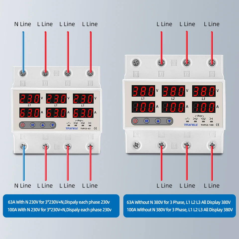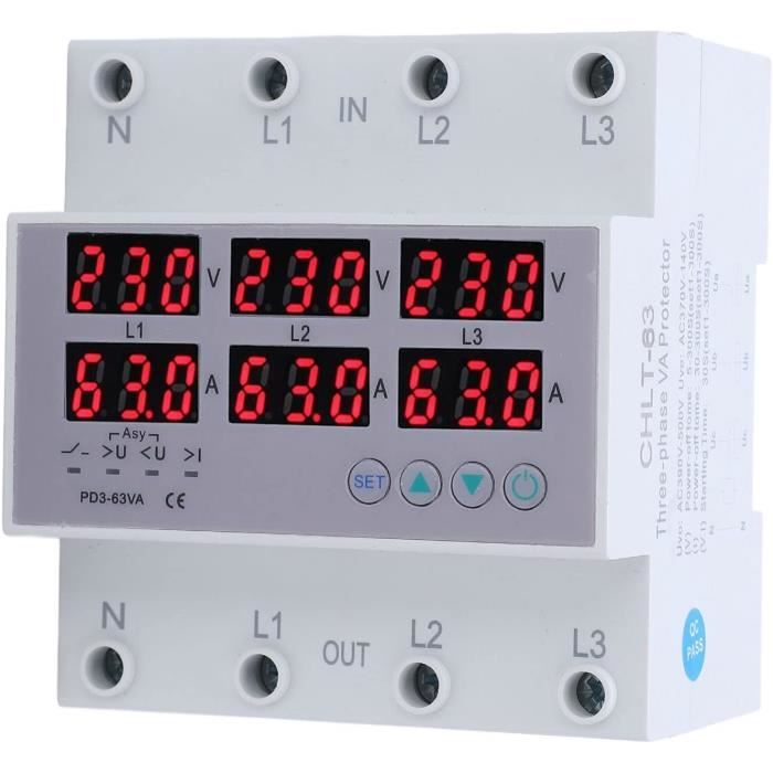 Relais Surveillance Triphasé Voltmètre Sélecteur De Phase Triphasé 3P+N Sur Rail DIN 100A Avec Protection Réglable Contre Les Surtensions Et Les Sous-tensions, Relais De Surveillance Et De Protection Disjoncteur Contrôle Phase 100A Sintimer – protecteur de tension réglable, contrôl... – Grandado Ce voltmètre et ampèremètre polyvalent ne se contente pas de mesurer des paramètres ; il améliore votre sécurité électrique. Que vous soyez confronté à des pics de surtension ou à des irrégularités de courant, cet appareil garantit la protection et la fiabilité de votre système circuit breakerType : Sélecteur de phaseType : Relais de tensionNuméro de modèle : TOVPD3-100VAY, circuit breaker , Sélecteur de phase Fangming-Voltmètre à rail DIN biphasé Disjoncteur biphasé Réglable avec