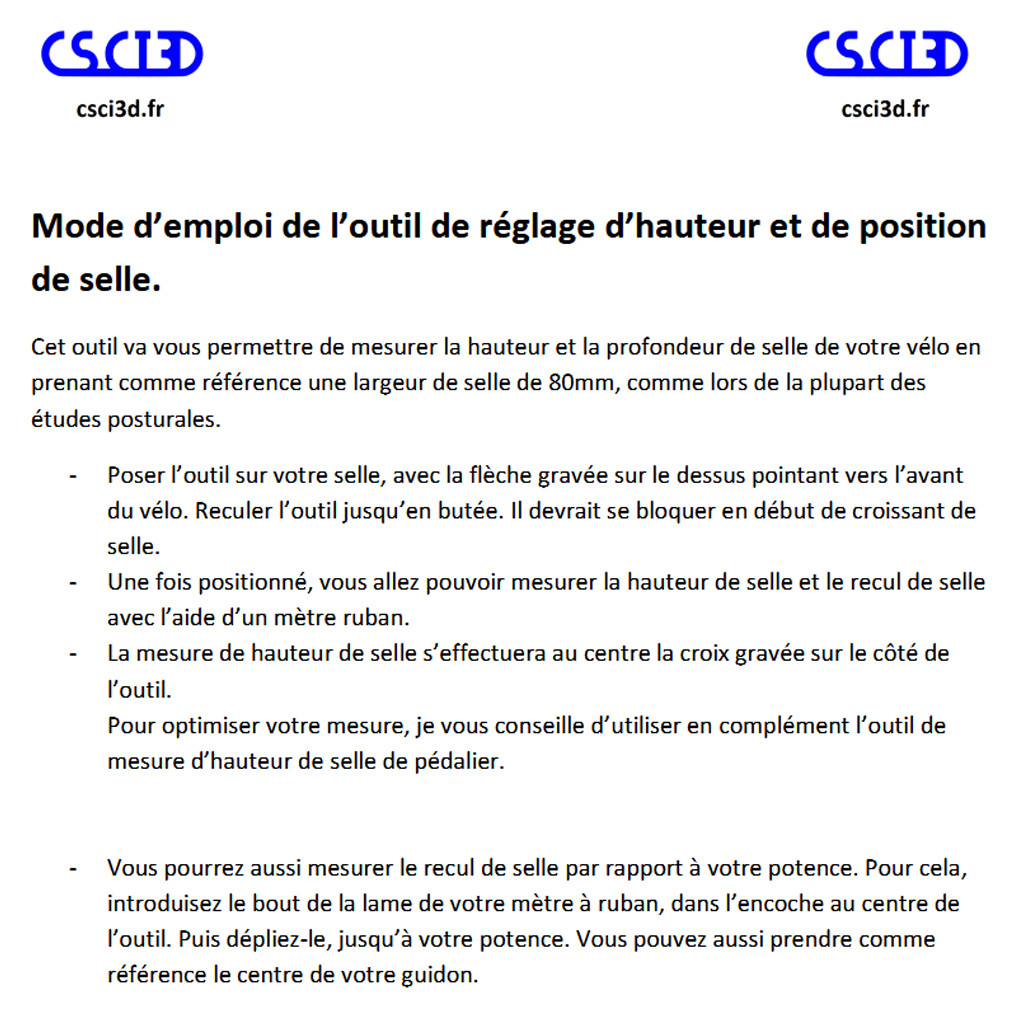 Modifiez l'inclinaison degré par degré jusqu'à obtenir l'alignement biomécanique optimal entre bassin, genoux et pédales Réglage hauteur de selle - Le vélo en image Description du produit Outil de Réglage de Positionnement de Selle Vélo Compatibilité universelle : Outil multifonction compatible avec types de vélos (route/VTT) permettant un réglage précis et rapide de l'angle de la selle. Serrage ergonomique avec repères visuels permet un réglage en 3 étapes : positionner, verrouiller, pédaler. Installation simplissime : Mécanisme intuitif ne nécessitant aucun outil spécial. Conçu pour ceux qui valorisent la sécurité et la performance, cet outil est indispensable. Comment régler la hauteur de la selle sur un vélo | trouvez votre En raison de différentes mesures manuelles, veuillez permettre une différence de taille de 1 à 2 cm. Les cyclistes peuvent profiter d'un meilleur confort et d'une posture améliorée à chaque trajet. Caractéristiques: Nom: outil de réglage de l'angle de siège de cycle Taille du produit: environ 190x120 mm / 7,48x4,72 pouces (voir l'image pour plus de détails) Matériel: PP Liste de colisage: 1 * outil de réglage du siège cycle Note: En raison de différents paramètres d'éclairage et d'écran, la couleur de l'élément peut être légèrement différente de l'image. Outil mesure angle selle vélo CSCI3D Outil Réglage Précis Selle VTT Route Outil Réglage Selle Vélo Outil De Mesure De Hauteur De Selle Vélo Accessoire Cyclisme Position Selle Améliorez votre expérience de conduite avec cette solution pratique et efficace.