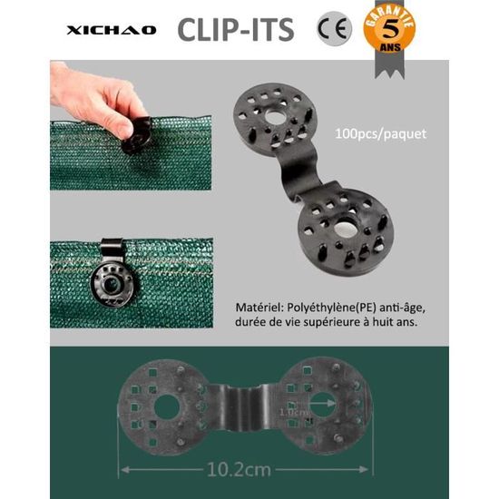 Attaches Anti-UV Réutilisables Clip Plastique Pour Toile Ombrage, 100 Pièces Fixation Toile Ombrage, Facile à Démonter, Fermement Fixé, Noir Clips Plastique Pour Toile Ombrage, Pour Filet D'ombrage, Tissu Coupe Vent 0XBIT Clips Filet Ombrage Jardin Polyvalence D'Usage: Les fixations pour voile d'ombrage s'adaptent aux jardins, cours, balcons, serres, etc. Idéal pour le jardin, les filets anti-oiseaux, les auvents et plus encore. [CONCEPTION PORTABLE] : clips noirs légers et compacts, faciles à transporter et à utiliser. Aucun outil supplémentaire n'est requis pour l'installation, ce qui le rend pratique pour une utilisation en extérieur Pinces en Plastique]Vous obtiendrez 100 clips d' ombrage, ce qui est suffisant pour répondre à vos besoins quotidiens, le clip de filet de protection solaire noir est conçu pour s' adapter à la plupart des tissus de protection solaire avec texture en maille et est d' une taille parfaite Vous pouvez l'ajuster ou la démonter facilement selon vos besoins. Leur installation est extrêmement simple, offrant une solution professionnelle pour sécuriser votre filet d'ombrage VOILE D'OMBRAGE,black 0.9x3m--Écran de Protection solaire Anti UV, pare Elles sont suffisantes pour répondre à vos besoins quotidiens et assurer une protection professionnelle de votre store ou toile de protection Facile à utiliser, durable et fiable. Conseils :Afin de vous assurer que le produit que vous choisissez correspond parfaitement à vos besoins, il est recommandé de vérifier attentivement les dimensions avant de passer commande. Matériau PP de Qualité : Les fixations pour voile d'ombrage sont fabriquées en polypropylène (PP) de haute qualité, léger, compact, facile à manipuler, recyclable, antioxydant et résistant aux intempéries Conception à Pointes Aiguës: Les fixations pour voile d'ombrage sont dotées de pointes aiguës pour une pose stable dans le filet d'ombrage. Quantité Suffisante: Ce lot propose 100 fixations en plastique pour toile de protection. Pour la démonter, appuyez simplement sur le bloc central du support de montage pour son déblocage automatique Contenu de l'emballage :100 pinces pour parapluieService client :Pour toute question concernant nos produits ou services, n'hésitez pas à nous contacter.