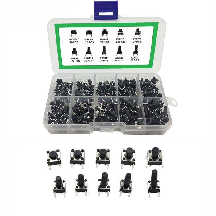 Largement utilisé : pour une utilisation dans une variété d'applications, notamment les voitures, les bateaux, les motos, l'électronique. Léger, rigide et esthétique. Largement utilisé pour le bricolage de véhicules. Lot 20 Pièces 4 Broches Micro-interrupteurs 10 Pièces/lot 8 * 8 * 5.5MM 4PIN Conducteur Lot Interrupteurs électroniques AOHRO Interrupteur Tactile 20 pièces/lot 8x8x5MM 4 Broches Silicone conducteur Silencieux Tactile Tact Bouton Poussoir Micro Interrupteur Auto-réinitialisation Excellents commutateurs tactiles, longue durée de vie. Emballage de type broche avec plastique pour empêcher l'infiltration du parfum de pin de soudure. L'espacement des contacts est petit, action à course courte, selon la puissance de la petite coupure rapide 20 pièces-Micro interrupteur Tactile à 4 broches, 10 à 100 pièces