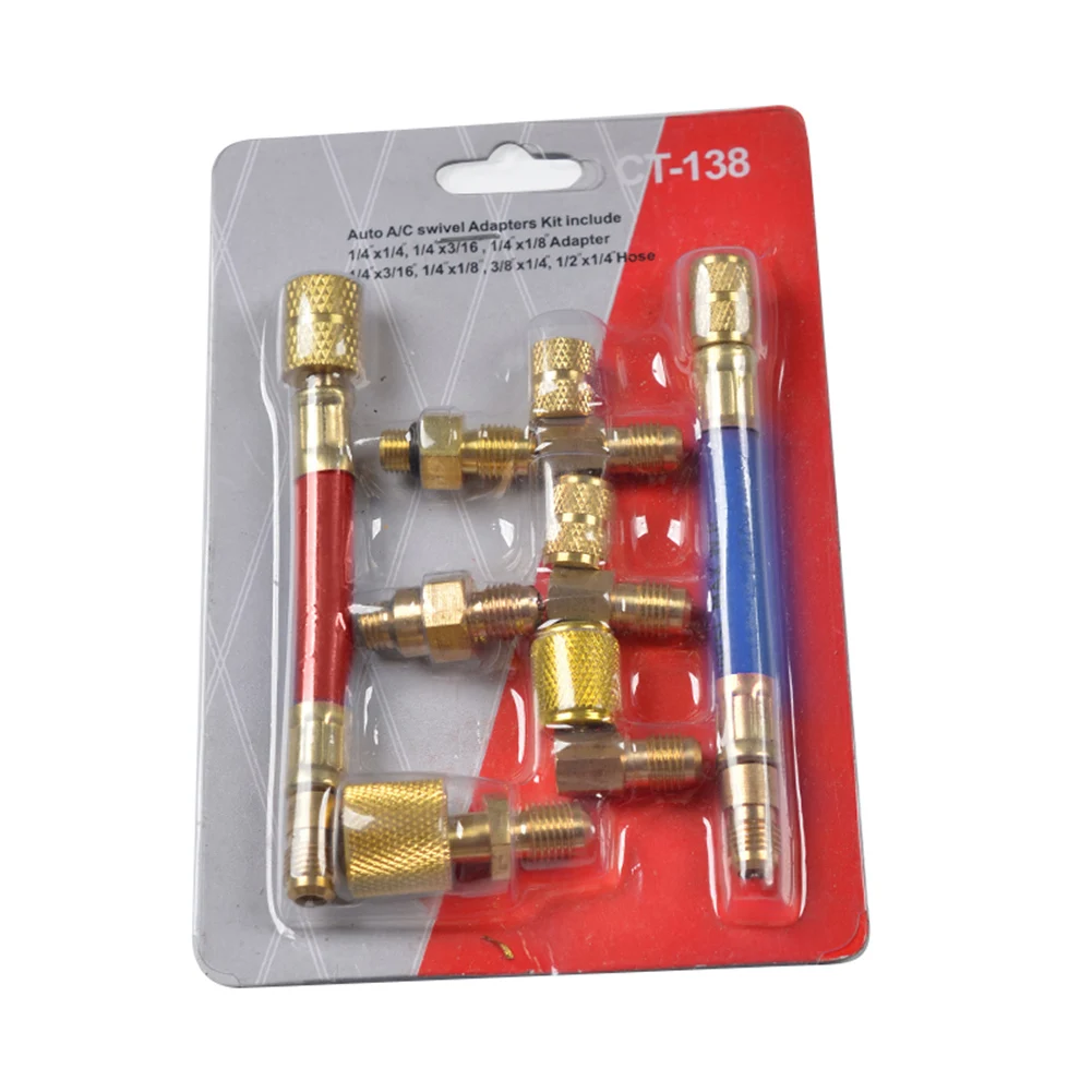 Polarlander Raccord universel haut de gamme R134A de transformation de gaz froid R-12 A/C pour collecteur de climatisation en laiton Tuyau: [mâle 7/16 '' et femelle 3/8 '' (rouge)] [mâle 7/16 '' et femelle 5/16 '' (bleu)] R134a 12kg Kit De Conversion De Tuyau De Jauge De Collecteur De éon AC, Adaptateur De Climatisation R134a, Connecteur De Couremplaçant Rapide Réglable H/L, 1/4 SAE Hylique Anti Fuite Liquide De Refroidissement Connecteur de réfrigération pour climatiseur de voiture 8 pièces. Il s'agit d'un kit adaptateur pivotant multifonction pour outil de réparation de réfrigérant automatique. Emballage inclus: 1x adaptateur côté haut, 1x adaptateur mâle, 1x adaptateur, 2x adaptateur flexible, 3x adaptateur 90 ° Material de borracha e metal, duram muito; Fácil de usar e instalar, vedação forte. É um kit adaptador giratório multifuncional de ferramenta de reparo de encaixe de refrigerante automático. Incluído no pacote Joint de transformation de gaz froid 8 pièces pour C'est un kit d'adaptateur de pivot multifonction pour outil de réparation de réfrigérant automatique. Matériel en caoutchouc et en métal, dure longtemps; Facile à utiliser et à installer, forte étanchéité. Kits de tuyaux adaptateurs pivotants.