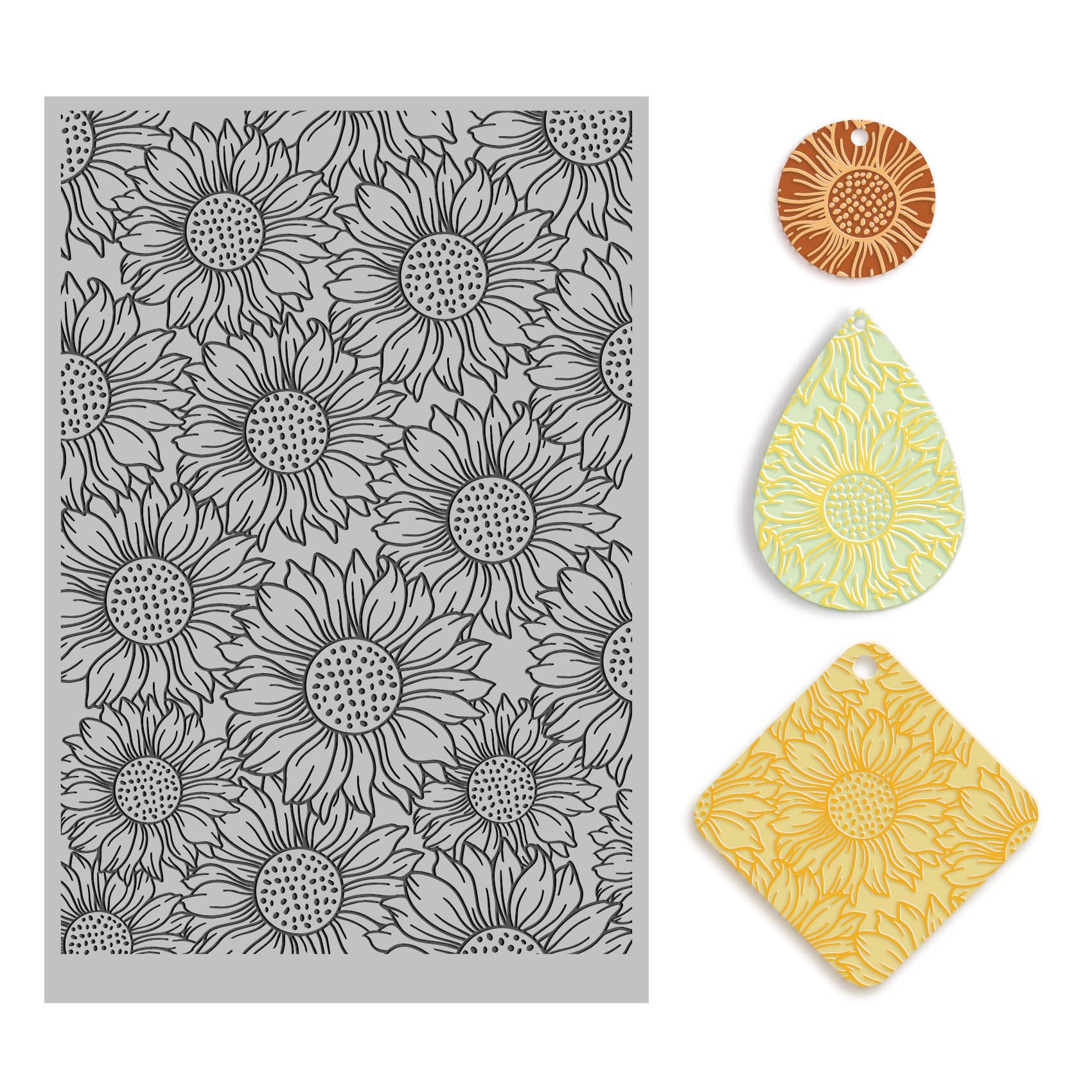 Facile à utiliser : rendez votre processus d'artisanat en argile plus efficace et agréable avec nos tapis texturés en silicone pour argile. Elles sont très faciles à utiliser et ont des impressions claires et précises dans l'argile. Nos tapis et pochoirs texturés en pâte polymère inspireront votre créativité et vous aideront à créer de superbes boucles d'oreilles qui ne manqueront pas de faire tourner les têtes Design feuilles de palmier : créez des textures sur le thème des feuilles d'été avec un motif de feuilles de palmier, parfait pour l'ambiance estivale ou... Impressions claires : nos tapis de texture en argile polymère et pochoirs peuvent faire des impressions claires sur l'argile. arriettycraft Tampons transparents en caoutchouc pour la fabrication de Ces fleurs, feuilles et texture géométrique peuvent inspirer votre créativité et vous aider à créer de superbes boucles d'oreilles. Excellent cadeau : nos tapis de texture en caoutchouc pour argile sont parfaits pour les débutants ou les artistes expérimentés en argile polymère. Pochoirs Silicone Bijoux Feuilles De Texture En Argile Polymère Pour La Fabrication De Boucles D Feuilles Texture Argile Polymère Polyvalent : il y a 4 feuilles de différentes textures d'argile qui peuvent améliorer vos projets de boucles d'oreilles en argile polymère. Ces feuilles de texture en argile polymère sont de 4 feuilles/lot. Chaque feuille mesure 10 x 15 cm.