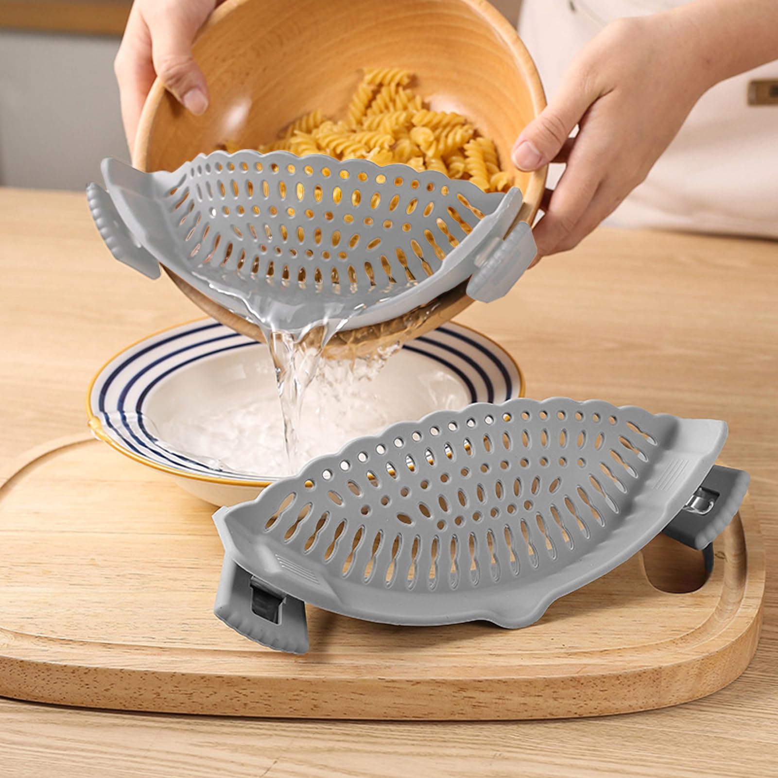 Il peut tolérer une vaste plage de températures allant de -40C à 230C. Sa taille compacte est parfaite pour les petites cuisines, tandis que le système de fixation facile vous aide à égoutter les aliments plus rapidement et avec moins de tracas. Notre passoire à pâtes en silicone se fixe facilement à n'importe quelle poêle pour filtrer et verser facilement les pâtes, les nouilles, les fruits et les légumes Passoire à pâtes en silicone enfichable : égouttage facile pour tous les cuisiniers ! ?? Vous en avez assez des renversements salissants et des passoires encombrantes qui prennent de la place ? Faites la connaissance de votre nouveau compagnon de cuisine : la passoire à pâtes en silicone enfichable ! Conçu pour égoutter les aliments rapidement, facilement et sans tracas, cet outil... Utilisation sans effort : en la clipsant simplement sur le bord de votre casserole ou bol, notre passoire à pâtes vous permet d'égoutter et de verser facilement des pâtes, des nouilles, des fruits, des légumes et plus encore sans perdre de temps ni d'efforts. Clip de passoire de Cuisine en Siliconen - Passoire universelle pour Pan, Kom Passe au lave-vaisselle : dites adieu au nettoyage fastidieux avec notre passoire à pâtes qui peut être facilement nettoyée au lave-vaisselle, vous donnant plus de temps pour vous détendre et profiter de votre repas. C'est également un choix parfait pour la fête des mères et la fête des pères. Passoire Casserole Adaptable Passoire à Fixer Au Pot - Passoires Réglables En Silicone à Clipser, Pour La Cuisine, Passoire à Spaghetti, Bec Verseur, Passoire Alimentaire, Gadget Pour Casseroles, Poêles, Bols Passoire Clipsable Durable et fiable : fabriquée en silicone de qualité alimentaire, cette passoire à pâtes présente des caractéristiques très résistantes à l'usure, à la chaleur et sans odeur. Notre passoire à pâtes en silicone se fixe facilement à n'importe quelle poêle pour filtrer et verser facilement les pâtes, les nouilles, les fruits et les légumes. Caractéristiques:Nom : passoire à pâtes.