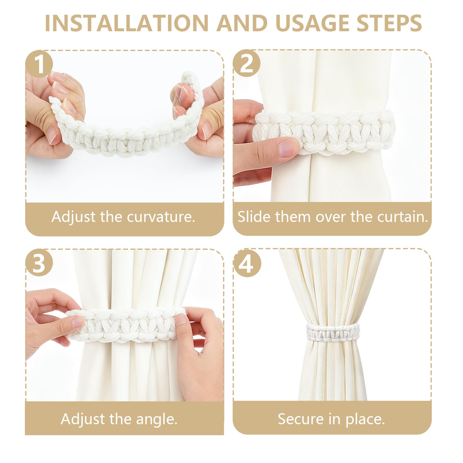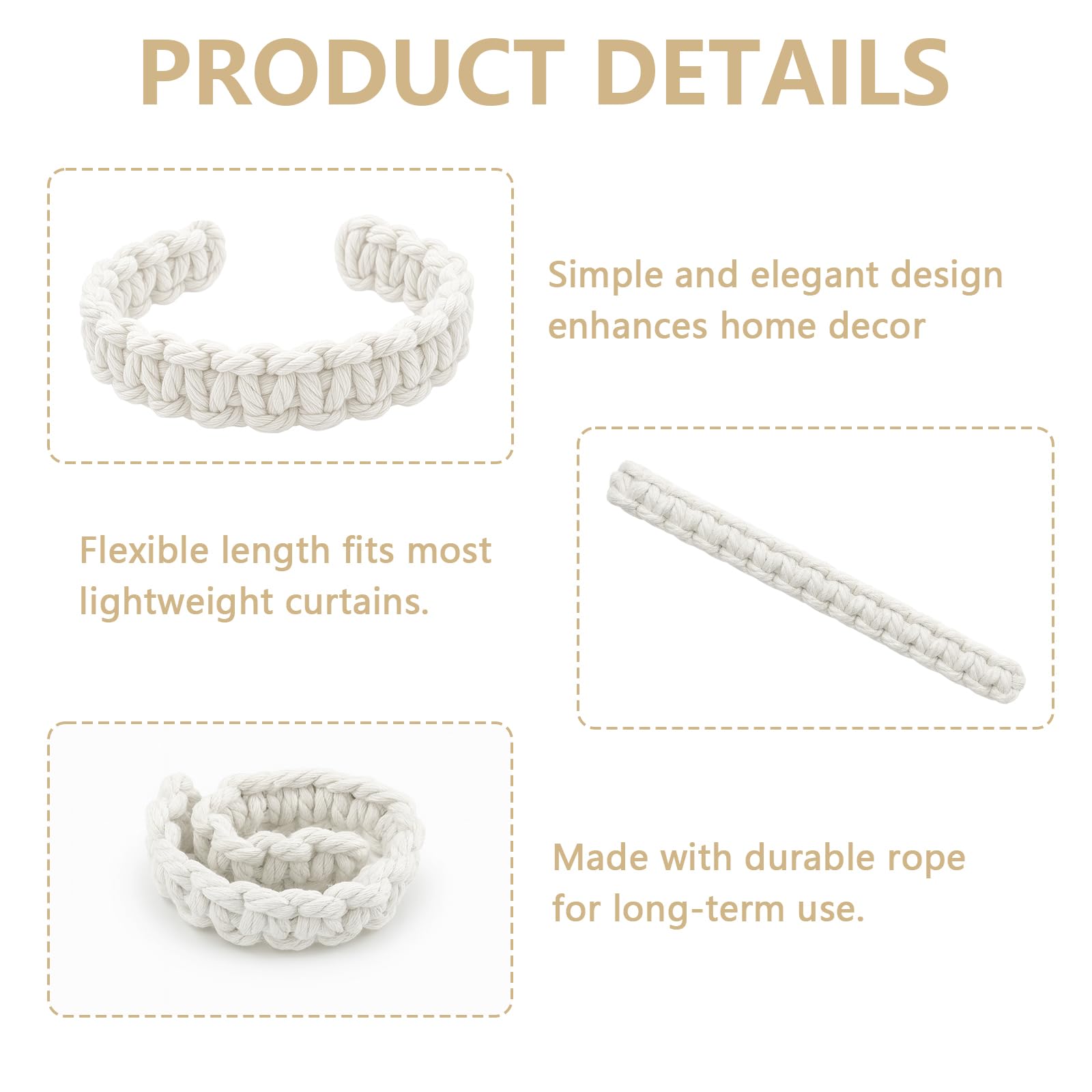 Surface antidérapante : La surface des Attache Rideau est traitée pour augmenter le coefficient de friction. Accroche Rideau Lot De 4 Embrasses De Rideaux Tissés,Bohème Embrasses De Rideaux En Fixation Sans Perçage Facile à Nouer Ainsi, ils maintiennent fermement les rideaux même sous leur poids, plus stables que les embrosses de rideaux en chanvre classiques. Ils acceptent plusieurs façons de nouage (nœud papillon, enroulement croisé),faciles à maîtriser même pour les débutants. Sie passen zu verschiedenen vorhangarten (leichtstoffvorhänge,dünndämmvorhänge) und verleihen jeder umgebung einen individuellen charakter Embrasse rideau bohème macramé | Décoration Macramé Spécifications techniques : Nom du produit :Embrasses De Rideaux Tissés Couleur : Marron/Beige/Gris clair/Noir Matériau : Mélange de chanvre et de coton Dimensions : 24x2 cm Poids : 26 g Contenu du set : 4 × Embrasses Pour Rideaux Décoration polyvalente : Avec leur motif tissé naturel et leur design rétro à deux couleurs,les embrasses pour rideaux ne servent pas seulement à fixer les rideaux : ils peuvent aussi être utilisés comme cordes de décoration murales pour suspendre des plantes ou des photos. Breite Anwendbarkeit: Die gardinenraffer eignen sich für wohnzimmer,arbeitsräume,esszimmer,küche,badezimmer, schiebefenster und büros. Flexibilité et Maintien de forme: L’extérieur des embrasses de rideaux bohème est tissé en corde de chanvre naturelle, alliant souplesse et support. Large champ d’application: Ces Attache Rideaux conviennent aux rideaux de salon,de bureau,de salle à manger,de cuisine, de salle de bain,de portes coulissantes et de bureaux. Facilité d’utilisation : Aucune perforation ni accessoire supplémentaire nécessaire: les attache rideau embrasse s’enroulent directement autour des rideaux pour être fixés. Lntyq 4 Pièces Embrasses De Rideaux, Sangles De Rideaux En Alliage Reglables Attache Rideaux Fenetre Pince Cordes A Pinces A Rideaux Pour Maison Bureau Hotel Decoration De Fenetre Feuilles Dorees 86940009