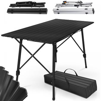 Cette table de camping pliable portable dispose d'une fonction réglable en hauteur, ce qui la rend idéale pour une variété d'utilisations, des pique-niques aux excursions de pêche. Juskys Table de Camping Picco - Légère en Aluminium, 90 x 52 cm, Pliable & Réglable en Hauteur - Pour Camping, Jardin, Extérieur - Argent 4,5 (286) 5499 La surface antidérapante assure un maintien sûr lors des barbecues ou des événements de barbecue. Multifonction : peut être utilisée comme table de camping, table de barbecue, table de pêche, table de pique-nique, table d'activités de plein air RV, table de fête de camping, table de cartes, table de camping-car, etc. Système d'ouverture fiable : le mécanisme de pliage intuitif avec éléments autobloquants crée facilement une surface de travail sans vacillement - Compagnon idéal pour les voyages spontanés dans la nature Surface Antidérapante Table Table De Camping Pliante Valise En Aluminium Avec 4 Chaises Table Extérieure Légère Charge 40kg Elle convient aussi bien pour les aventures en plein air, les réunions en intérieur et les événements de cinéma en voiture. Large compatibilité tout-terrain : les pieds spécialement conçus avec profil antidérapant compensent jusqu'à 8 angles d'inclinaison*. Idéal pour les terrains accidentés lors de activités de plein air telles que la pêche, le barbecue ou les travaux manuels en plein air Spécifications: Matériau : alliage d'aluminium / plaque d'acier Dimensions du produit : environ 60 x 40 x 56 cm. Table de pique-nique pliante en alliage d'aluminium pour le Hauteur réglable : réglable de 10,6 à 52,1 pouces Poids : 2200 g., Charge maximale : 40 kg. Bureau Réglable En Hauteur - Table D'Appoint Avec Roulettes - Avec...