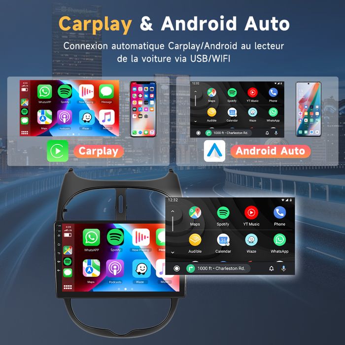 【Navigation GPS et Hotspot WiFi】La android auto Peugeot 206 avec navigation GPS offre des cartes en ligne et des cartes hors ligne pour naviguer, vous pouvez choisir le moyen approprié en fonction de la situation réelle. Cet autoradio Yaris s'intègre parfaitement au smartphone, vous permettant d'accéder à vos applications préférées, à votre musique et à vos outils de navigation GPS sans effort. Cet autoradio tactile pour Honda Fit est doté d'un écran tactile HD 1080p et du système Android 13 2G 64G. Profitez d'un fonctionnement plus fluide et d'une réactivité accrue Autoradio Bluetooth et radio FM RDS : microphone intégré, autoradio avec kit mains libres Bluetooth, prend en charge la synchronisation des contacts et la lecture de musique Bluetooth La fonction Bluetooth intégrée permet d'écouter de la musique et d'utiliser la fonction mains libres Bluetooth. 4G+32G Autoradio 2Din Android 12 pour PEUGEOT 206 206CC 206SW 2000-2008 lecteur multimédia Carplay Audio stéréo 4G WIFI Bluetooth - Auto La fonction FM/RDS permet d'écouter les nouvelles et les informations routières à tout momentv 【Autres Fonctions Android Multiples】EQ Audio / Contrôle au volant / WiFi Hotspot Internet / 1080P HD Video Playback / GPS Navigation / Split Screen / Bluetooth 4., 0 / Online & Offline Maps / FM RDS Radio / 26 Ul Desktop Themes / Dual USB Input / 9 inch Touch Screen / Package Compatible avec AHD Rear View Camera and Mic Autoradio 2Go RAM 64Go ROM 2G+64G Android Autoradio Pour Peugeot 206/206CC/Citroen C2 Carplay 206 Il prend également en charge la commande vocale via l'assistant, ce qui vous permet de garder les mains libres tout en utilisant l'autoradio Peugeot 206 206CC Citroen C2 2001 2002 2003 2004 2005 2006 2007 2008 2009 2010 2011 2012 2013 2014 2015 2016 9 Pouces Ecran Tactile radio stereo Carplay Android Auto poste car play 2 din autoradio Cette autoradio Peugeot 206 a le dernier système d'exploitation Android 13, 2GB RAM & 64GB ROM, 2G RAM assure que la stéréo fonctionne en douceur, 64G ROM vous permet de télécharger plus d'applications