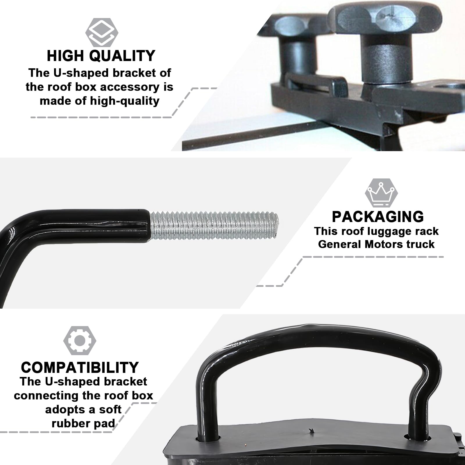 Set de 4 supports de coffre de toit pour barres de toit de voiture avec supports en U largeur intérieure 85 mm 2 ceintures 25 mm autocollants ronds à pois Installation facile : accessoires d'installation de coffre de toit est compatible avec plus de 95 % des rails de toit du marché, aucun outil professionnel n'est requis et une seule personne peut effectuer l'installation. Kit Installation Support Coffre Toit Rails Sangles écrous 4 Pièces Accessoires D'installation De Coffre De Toit Installation Coffre Toit Facile Sans Outil Nom du produit : accessoires d'installation de coffre de toitMatériau : MétalCouleur : NoirQuantité : 4Applications : Différents modèles Conception réfléchie : Installation du support de coffre de toit Un autocollant à points est inclus pour marquer la position de l'écrou afin d'éviter de manquer l'installation ; Installation du support de coffre de toit Le bord du bandage a été traité avec un traitement anti-usure pour protéger la peinture du toit et la surface du coffre à bagages et améliorer le confort du voyage. Un contrôle qualité rigoureux garantit un voyage sûr et sans souci. Les attaches et accessoires pour coffre de toit constituent la base d'un transport sécurisé des bagages sur le toit de la voiture. Ces éléments garantissent la stabilité du coffre de toit et la protection des affaires durant les trajets Guide pratique : faire soi-même l'installation de son coffre de toit Le accessoires d'installation de coffre de toit est renforcé par deux bandages haute résistance pour une meilleure protection sur les longs trajets. Installation du support de coffre de toit est équipée de boutons antidérapants ergonomiques, ce qui permet d'économiser des efforts ; le bandage a une conception de boucle rapide, ce qui rend l'installation et le retrait plus efficaces. Son filetage antidérapant unique empêche efficacement le desserrage et le déplacement pendant la conduite.
