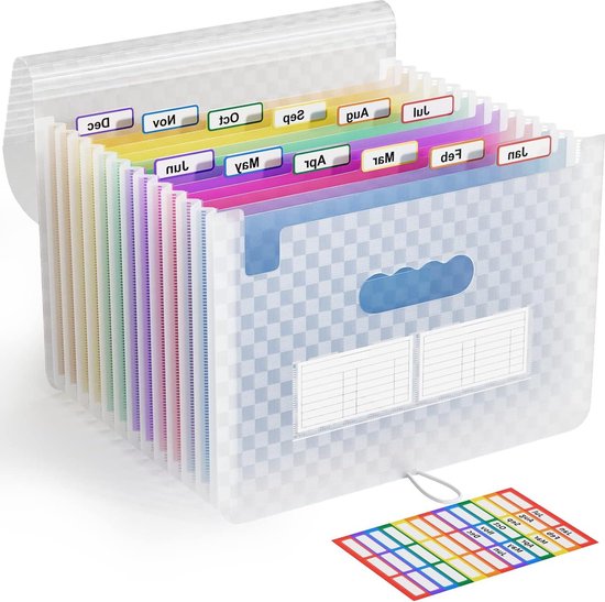 Trieur à Soufflets Classeur Rangement 13 Compartiments avec Couvercle Organiseur Documents Cesil Organiseur De Fichiers Accordéon Extensible, 13 Poches, Format A4 étiqueteuse Portable Rendre la vie plus facile : les classeurs de rangement sont parfaits pour tout organiser, des paperasses et factures fiscales aux reçus, en passant par les manuels, les recettes, les dossiers de santé et même les œuvres d'art. Accès rapide - Porte-documents A4 - Les étiquettes de couleur claire sont incluses et peuvent être personnalisées comme étiquettes mensuelles, de sorte que vous pouvez facilement les trouver en les regardant. Design portable : classeur de rangement portable A4 en haut avec un design portable, pas nécessairement besoin de tenir dans la main ou de le mettre dans la poche, peut être aussi simple et pratique comme un sac à main, vos voyages d'affaires et participer à la réunion d'organisation de fichiers sont une bonne aide EN STOCK : Trieur à Soufflets Classeur Rangement 13 Compartiments, A4 Porte Revue Trieurs Format Portrait,Chemise Vertical Papier Administratif, Accordéon Extensible Documents Organiseur, M26FR-132122 pas cher. Livraison rapide partout en France Le fond fermé garantit que les papiers restent dans la bonne fente Pratique et organis - Grand format A4 avec clip de classeur amovible, protection de la feuille, compartiment pour tablette, porte-stylo, compartiment pour t l phone portable, compartiment documents, compartiment pour billets et emplacements pour cartes. Plusieurs poches int rieures et compartiments pour documents, lettres, notes, enveloppes, t l phones portables, blocs, stylos, cartes de... Il est idéal pour le rangement à la maison. Les étiquettes sont claires et faciles à lire et ne sont pas masquées par des documents., 3., Organisation mensuelle des billes----Doublure accordéon portable, extensible en haut et en bas, 13 poches et onglets multicolores, pour format lettres/A4., 【Organisation mensuelle des billes】Doublure accordéon portable, extensible en haut et en bas, 13 poches et onglets multicolores, pour format lettres/A4