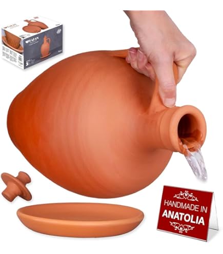 Récupérateur d'eau JARRE 1000 Litres terre cuite Bouteille écologique Sans Plastique Un Pot à Eau En Terre Cuite émaillée Fait à Vallauris Sur Gens De Confiance Bouteille Sans Plastique écologique Buvez l'eau refroidie pour des bienfaits thérapeutiques., Matière : Argile , Capacité : 1000 ml , Contenu : 1 pièce , Couleur : Marron , Eau froide naturelle Le volume de la bouteille est de 1000 ml. Tous nos ustensiles de cuisine en argile sont certifiés sans plomb et sans arsenic. Bouteille en terre cuite marron - La Remeublerie Le risque sain d'attraper le froid est moins important lorsque vous buvez de l'eau des bouteilles d'argile contrairement à l'eau réfrigérée. Fabriqu e partir d'argile cuite, cette jarre est un produit enti rement naturel et respectueux de l'environnement.Chaque piece est unique car r alis entierement la main par des artisans marocain Mode d'emploi Pour l'utiliser, remplissez la bouteille d'eau et laissez-la reposer pendant 1 heure pour refroidir naturellement. L'eau à l'intérieur de la bouteille se refroidit en 1 heure.
