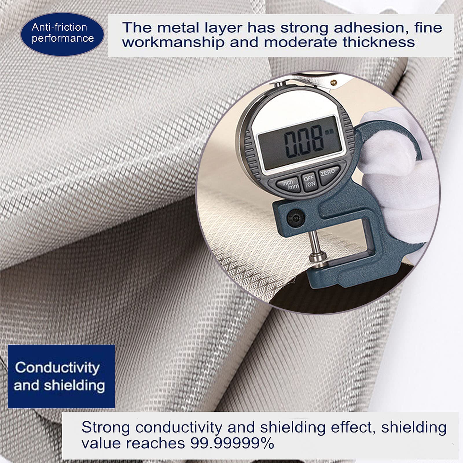 ★ Protection contre les champs électromagnétiques -- Blocage du WIFI et des radiations des téléphones portables- absorbe le rayonnement magnétique des appareils. - Protection des données: comme insert dans le portefeuille ou le sac à main pour protéger vos cartes de crédit contre le vol de données. ● Pour une utilisation comme sous-couche ou rideaux pour protéger les champs électromagnétiques de toute la maison. Il peut servir pour emballer vos cartes de crédit ou pour faire une pochette pour votre téléphone portable, clé intelligente, ou tout ce qui reçoit ou transmet ces types de signaux. une réduction de rayonnement EMP et EMF. Tissu de blindage RF Protection EMF Tissu Faraday Protection EMI RFID Blocs de poussière de nickel-cuivre Militaires Signaux RF pour Blocage des ondes radio RF/EMI Micro-ondes, Argent-1 m inhibe les signaux radio, 3G, 4G et 5G, bloCage RF/EMI/EMF/LF. It soulagera efficacement les maux de tête causés par le rayonnement électromagnétique Tissu RFID EMF en tissu Faraday - Sacs Faraday - Tissu de blocage du signal - Anti-rayonnement, antistatique, isolation EMI, argenté - 5 x 1,1 m : : Maison★[Matériau de blindage militaire]Le cuivre nickel est un métal isolant populaire en raison de sa haute conductivité électrique et de son efficacité dans la réduction du signal. Notre tissu Faraday est composé à 20... Protection RFID WiFi 5G Tissu De Protection EMF, EMI, Blindage RF Et RFID Nickel Tissu Anti Ondes conductivité etbien protégé. ✿ Caractéristiques:◆ Matériau: PET/Ni+Cu+Ni◆ Épaisseur: 0., 08mm◆ Valeur de blindage: 99,99%◆ bande de fréquence de blindage: 10KHz-30GHz◆ Efficacité de blindage: 80-90dB◆ Résistance de surface: 0., 03-0., 05Ω/sq◆ Largeur: 1100 mm◆ Fonction: anti-statique, anti-rayonnement; une conductivité élevée; faible résistance✿ Application de la protection RFID tissu:● Pour fabriquer des sacs Faraday, pour téléphone pour bloquer le signal. Tissu de protection]Le tissu faraday radioprotection est fait de polyester, 20% de cuivre et de fibre nicker, résistance de la surface ● Protection contre les rayonnements électromagnétiques des ordinateurs portables, pour réduire les interférences électromagnétiques, RF et RFID. Isolation des ondes radiofréquence et électromagnétiques. ✿ Tissu de protection faraday- Fonctions: brosse anti-vol RFID, protection contre les radiations, bouclier de signal de téléphone portable, blindage de signal Wi-Fi, blindage électromagnétique. drapière anti-statique, compteur sans fil blindage, E-textiles, fournitures de sécurité de l'information militaires.
