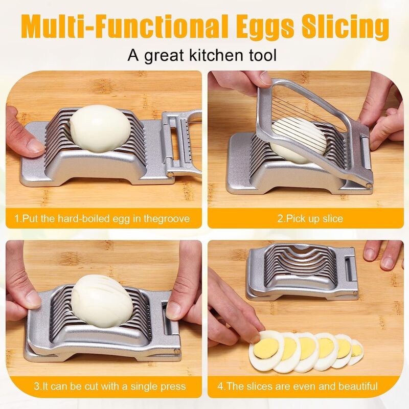 LAPONO 2 Pièces Coupe-œufs Trancheuse d'oeufs Multifonction Coupe-Oeufs Manuel Egg Cutter Outil Cuisine Coupe-Pomme et tomates Coupe-œufs Para bouillis Fruits trancher Fromage Fraise Coupe Oeufs Durs Egg Slicer Cutter Coupe-Oeufs,2 En 1 Trancheuse D'oeufs En Acier Inoxydable, Coupe-Oeufs Multifonctionnel En Métal Utilisé Pour œufs Et Fruits (Blanc Ustensile Cuisine Pratique Préparation simples et sûre: œufs coupés Eyer avec une main, idéal pour les personnes âgées et les enfant pour assurer une préparation sûre et facile des plats sans capacités spéciales qui améliorent naturellement le confort de la cuisine à l'usage intuitif Ce système de climat d'œufs développé pour l'efficacité sert à la fois d'hélicoptère et de trancheuse pour les aliments mous tels que les œufs, les fraises, les bananes et les champignons. Spotted -Machine - offre un nettoyage rapide après avoir coupé des tomates, des cerises ou des fruits. Oui, les trancheuses à œufs sont conçues spécifiquement pour trancher les œufs durs. Ils fournissent des tranches nettes et uniformes sans écraser l'œuf Bords de coupe des aliments mous: Assurez ces rainures avec un placement sûr et assurez une coupe précise avec des fils permanents en acier inoxydable, idéal pour préparer les aliments dans les repas Caractéristiques: 1. Conception 2 en 1 : la combinaison polyvalente de coupe-œufs convainc par deux fonctions dans un seul appareil : découper des tranches rondes et ovales ainsi que des crevasses. Deux fonctions de coupe différentes pour répondre à vos besoins quotidiens. 2. Qualité supérieure : utilisez du PP sans danger pour les aliments pour garder la cuisine propre. Fait d'acier... Robuste et pratique: la combinaison d'éléments ABS et en acier inoxydable à forte longueur assure une coupe efficace et un nettoyage facile avec une disposition de réduction du temps qui est complètement dans le lave-vaisselle, ce qui en fait un choix fiable pour une cuisine quotidienne à usage quotidien quotidien Sa fonctionnalité 2 en 1 en fait un précieux appareils de cuisine pour la préparation des salades, du petit-déjeuner et des desserts.