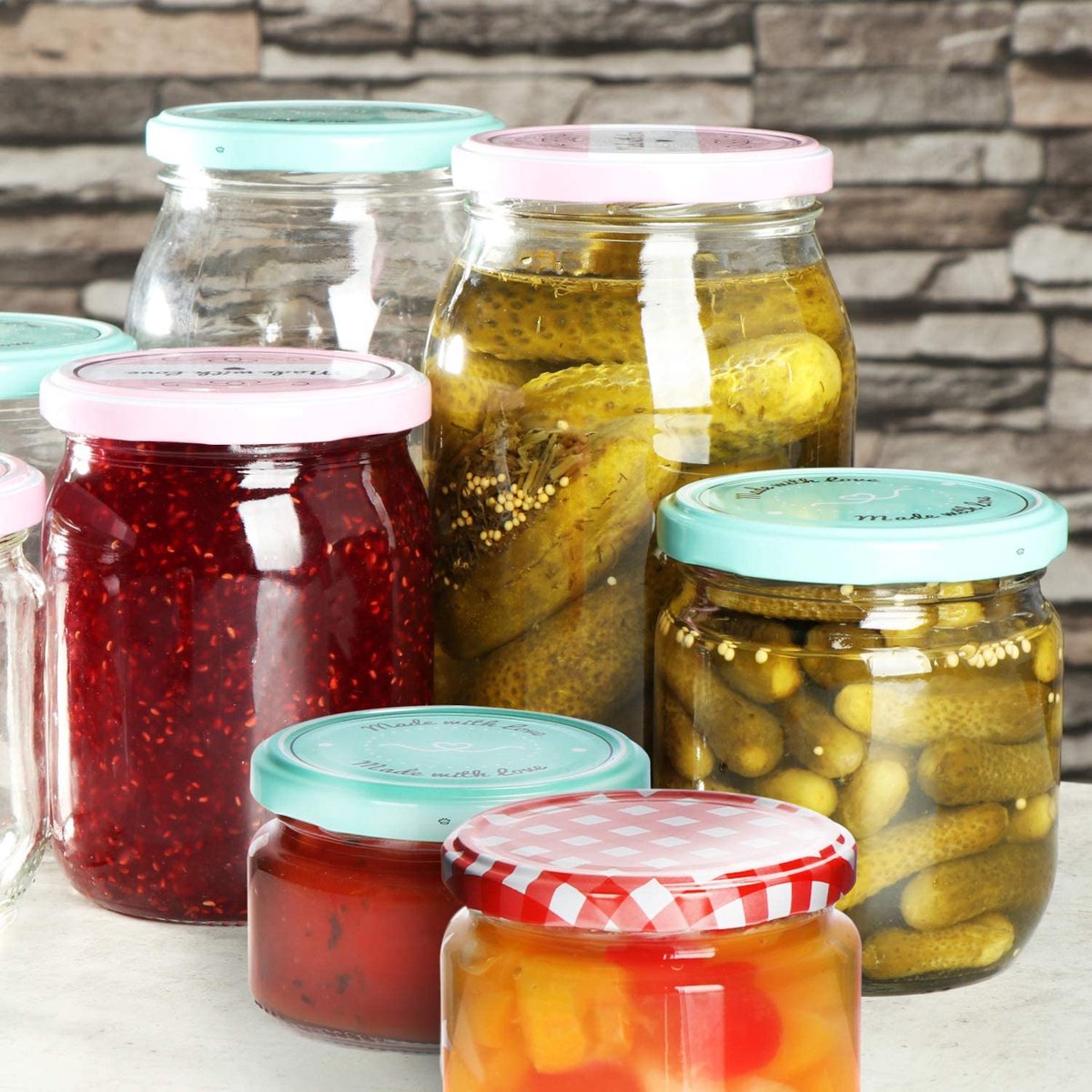 Pratique et facile à utiliser : vissez simplement dans un pot Mason standard de 66 mm ;. Fournitures de mise en conserve polyvalentes : conviennent à une large gamme de conserves, notamment de la confiture, de la gelée, des fruits, des légumes, des sauces et bien plus encore, ce qui en fait un incontournable pour les amateurs de conserves domestiques. Design à carreaux décoratif : le motif à carreaux élégant ajoute une touche rustique et charmante à vos bocaux, améliorant la présentation pour la cuisine, les fêtes ou les cadeaux. Lot de 20 couvercles de rechange Twist-Off de 66 mm noirs Matériau en fer : fabriqués à partir de fer stable, ces couvercles résistent à la flexion ou à la corrosion, garantissant des performances durables et une utilisation répétée dans les conserves domestiques. Fournitures de mise en conserve polyvalentes : convient pour une large gamme de conserves, y compris la confiture, la gelée, les fruits, les légumes, les sauces, et plus encore, ce qui en fait un incontournable pour les amateurs de mise en conserve à domicile Couvercles Bocaux Mason 66mm Paquet De 12 Couvercles 2 Pièces Pour Bocaux Mason à Goulot Régulier Lot 40 Couvercles Couvre pots de confiture en tissu avec dentelle, couleurs assorties (vichy, floral, uni), décoration rustique en conserve, décorations de pots Mason...