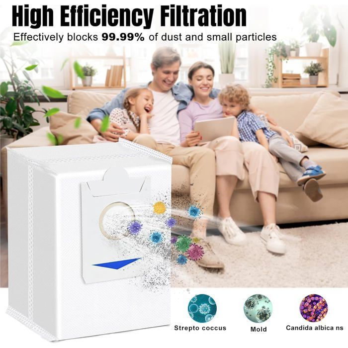 *Construction : conçus dans un souci de durabilité, ces sacs sont résistants aux déchirures et conçus pour résister aux rigueurs d'une utilisation régulière, pour garantir une fiabilité durable. Matériau. Fibres soufflées par fusion et tissu non tissé ; Couleur. Voir Image ; Dimensions de l'article L x l x H · 15 x 10 x 5 centimètres ; Poids de l'article * Confinement hygiénique de la poussière : le design innovant empêche la poussière nocive de fuir, maintenant un environnement propre et hygiénique en garantissant que toutes les saletés absorbées restent en toute sécurité à l'intérieur du sac. Technologie de filtration supérieure : doté d'un système de filtration de pointe qui capture 97 % des particules de poussière fines, améliorant votre efficacité de nettoyage. Entretien pratique : l'installation rapide et simple facilite le remplacement des sacs pendant vos routines de nettoyage régulières. Deebot T80 Omni Lot De 10 Sacs à Poussière De Rechange Pour Aspirateur Ecovacs Deebot Ozmo N8n8 Pron8n8 Pro Pour Ecovacs Deebot T8 T8 T8 Aivi T8 Aivi T8 Max T9 Dx93 Ddx96 Yeedi Vac Station 84307965 Sacs Rechange Robot T80 Omni * Vidage automatique pratique : la grande capacité de 3,5 litres dans la station de vidange automatique signifie que vous pouvez passer jusqu'à 40 jours sans avoir besoin de nettoyer le réservoir à poussière, ce qui rend votre routine de nettoyage plus efficace et agréable. Conçus pour durer : fabriqués à partir de matériaux, ces sacs sous vide résistent aux déchirures et à l'usure, à une utilisation durable et à la fiabilité. [Environnement plus propre] Le design unique empêche la poussière nocive de s'échapper, gardant votre maison hygiénique car toute la saleté reste contenue dans le sac. Compatibilité : compatible avec Ecovacs, Deebot T80, OMNI. 24 Pièces pour ECOVACS DEEBOT OZMO T8 Robot Aspirateur Haute Capacité Nombre de pièces : 4/10., Contenu de l'emballage : 4/10 sacs à poussière. 21. 9% de remise. EnviroCare Remplacement Allergène Filtration Aspirateur Sacs à poussière faits pour s'adapter Electrolux Intenisty EL5020. US Boutique
