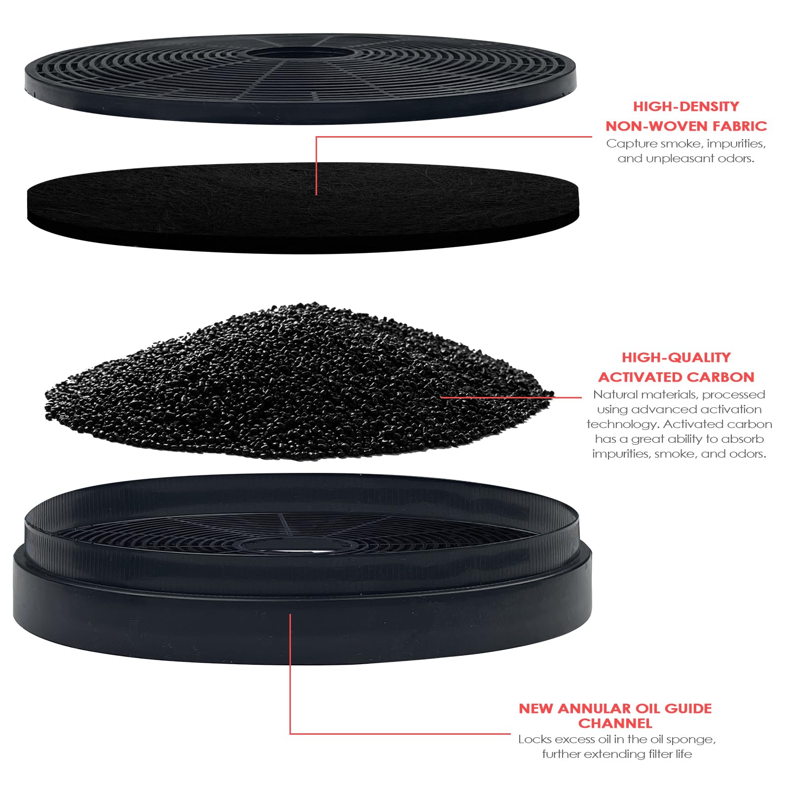 ✅ COMPATIBILITÉ : Ce filtre à charbon actif pour hottes aspirantes est compatible avec une large gamme de hottes aspirantes du marché. ✅ ÉLIMINE LES VAPEURS DE CUISSON : Les filtres de hotte aspirante sont conçus pour éliminer les vapeurs de cuisson telles que la fumée et la graisse produites lors de la préparation des aliments. Filtre à charbon 190mm pour Hotte WHIRLPOOL 484000008647 FILTRE A CHARBON pour HOTTE ROBLIN - 6403030 Le charbon actif peut durer longtemps avant de devoir être remplacé. 2x Filtre Hotte Aspirante, 175 Mm Filtre à Charbon Actif Extracteur De Cuisine Recyclage Air De Remplacement Recirculation Filtrant Pour Respekta Miz0031 Klarstein Pkm Co4 84744671 Diamètre 137 mm * Hauteur 24 mm, poids net 140 ± 10 g ✅DURABLE ET LONGUE DURÉE : Le filtre de hotte est fabriqué dans un matériau de haute qualité, durable et résistant à l'usure. Filtre De Remplacement Diamètre 137mm Filtre à Charbon Actif, Extracteur De Cuisine Recyclage Air Filtre Remplacement Recirculation Air Cuisine Maintient l'air de la cuisine frais et exempt de condensation et de résidus huileux. ✅ FILTRATION AVANCÉE : Nos filtres de hotte utilisent du charbon actif, un matériau poreux et extrêmement absorbant, pour capturer et retenir les mauvaises odeurs et les contaminants dans l'air. Les filtres de hotte aspirante améliorent la qualité de l'air que vous respirez pendant que vous cuisinez et contribuent à un environnement de cuisine sain et agréable.