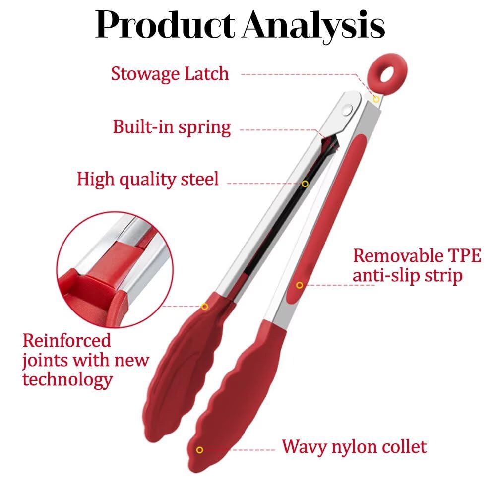 Elles supportent également les températures les plus élevées et laissent vos ustensiles de cuisine intacts Cuisinez comme un professionnel Pinces de cuisine professionnelles : pinces de cuisine avec corps en acier inoxydable et pointes en silicone qui permettent de saisir de manière sûre et précise les aliments délicats et les aliments chauds sans endommager la surface des aliments ou des récipients Pinces de cuisine professionnelles : pinces de cuisine avec corps en acier inoxydable et pointes en silicone qui permettent de saisir de manière sûre et précise les aliments délicats et les aliments chauds sans endommager la surface des aliments ou des récipients Solution complète – Que vous soyez boulanger, chef ou maître sur le barbecue, cet ensemble d'ustensiles de cuisine de luxe est une solution complète. Pince De Cuisine Alimentaire Avec Bord En Silicone Et Système De Qualité qui vous permet de sentir : ces pinces de cuisine standard ont des pointes en silicone de qualité supérieure qui ne rayent pas, ne fondent pas et ne perdent pas leur forme. Avec une poignée haute performance et un design robuste, vous pouvez couvrir tous vos besoins de cuisine et de service. Pince Pour Air Fryer Walfos Pinces De Cuisine En Silicone Résistantes à La Chaleur - En Pinces Cuisine Protégez vos casseroles et poêles – Contrairement aux pinces de cuisine ordinaires en acier inoxydable, ces ustensiles de cuisine courants sont dotés de pointes en silicone résistantes aux rayures et à la chaleur. Lot de 2 pinces de cuisine en silicone pour griller, cuisiner et servir, résistantes à la chaleur pour poêles antiadhésives, en acier inoxydable sans BPA, noir et rouge Obtenez les résultats de cuisson que vous voulez : êtes-vous prêt à améliorer vos compétences de cuisson ? Que vous cuisiniez sur la cuisinière ou à l'extérieur sur le barbecue, cet ensemble de pinces de cuisine vous donne les résultats que vous voulez.