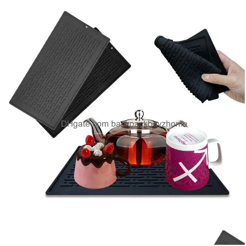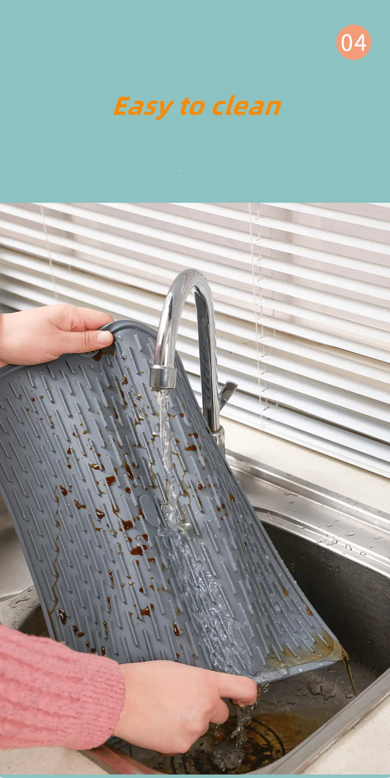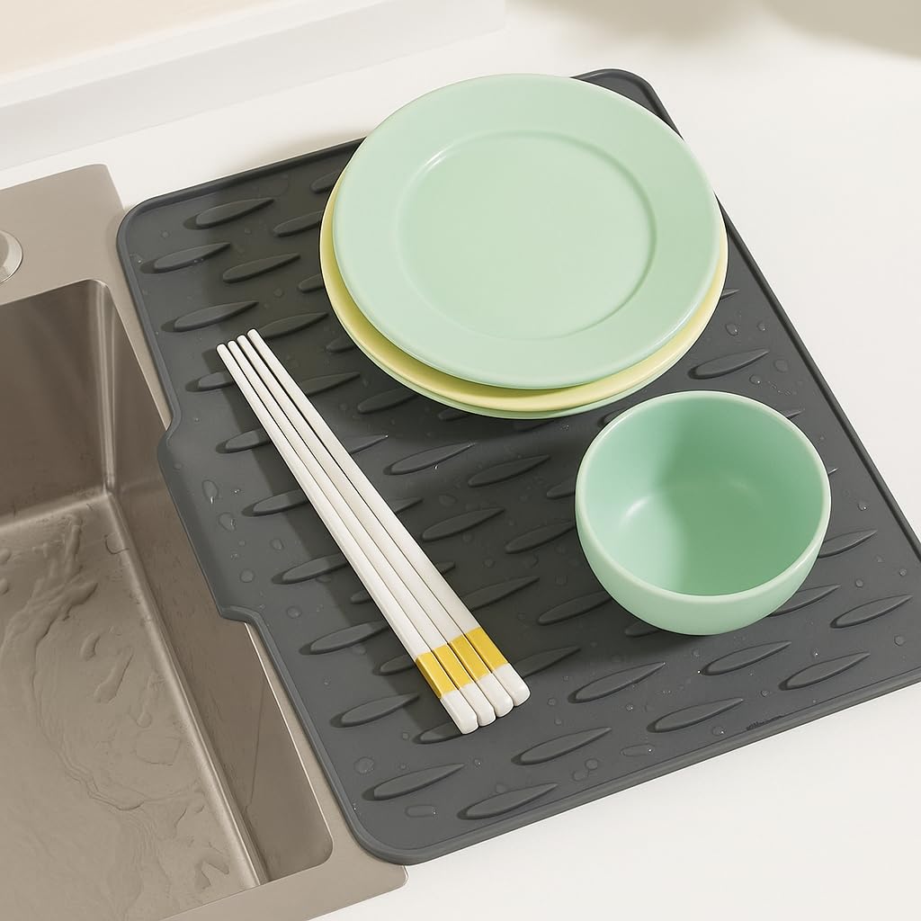 Durable yet soft-touch material ensures longevity without fading or cracking like cloth or plastic alternatives A single mat that replaces multiple tools in your kitchen. Multi-Functional Kitchen Essential:More than just a drying mat, this silicone thickened non-slip insulation dish drying mat serves as a fridge liner, baking mat, coffee station mat, or non-slip surface for cutting boards Shields your countertops from burns and warping while maintaining a sleek, protective surface. 【High Heat Resistance – Up to 446°F (230°C)】Doubles as a heat-resistant trivet for hot cookware, coffee machines, or air fryers. Rapid Drainage & Spill-Free Design]Engineered with elevated ridges and deep drainage grooves, this silicone worktop saver accelerates water runoff and prevents stagnant puddles 【Premium Food-Grade Silicone – Safe & Eco-Friendly】Made from BPA-free, odorless, and silicone—safe for direct food contact and gentle on the environment. Specification: Material: Silicone Color: Gray Size:As Shown In the Figure Package Included: 1/2 Pcs * No-Spill Silicone Worktop Saver 1Pc * Cleaning Brush 1 Pair * Cleaning Gloves Note: 1., Due to the different display and lighting effects, the actual color of the item may be slightly different from the color displayed in the picture., 2., If you have any questions, please feel free to send us an email, we will give you a satisfactory reply within 24 hours. Tapis évier Cuisine Antidérapant Silicone Draining Mat For Sink Silicone Dish Drying Mat For Kitchen Counter No Spill Worktop Saver Drip Free Non 686817 Tapis De Séchage Silicone