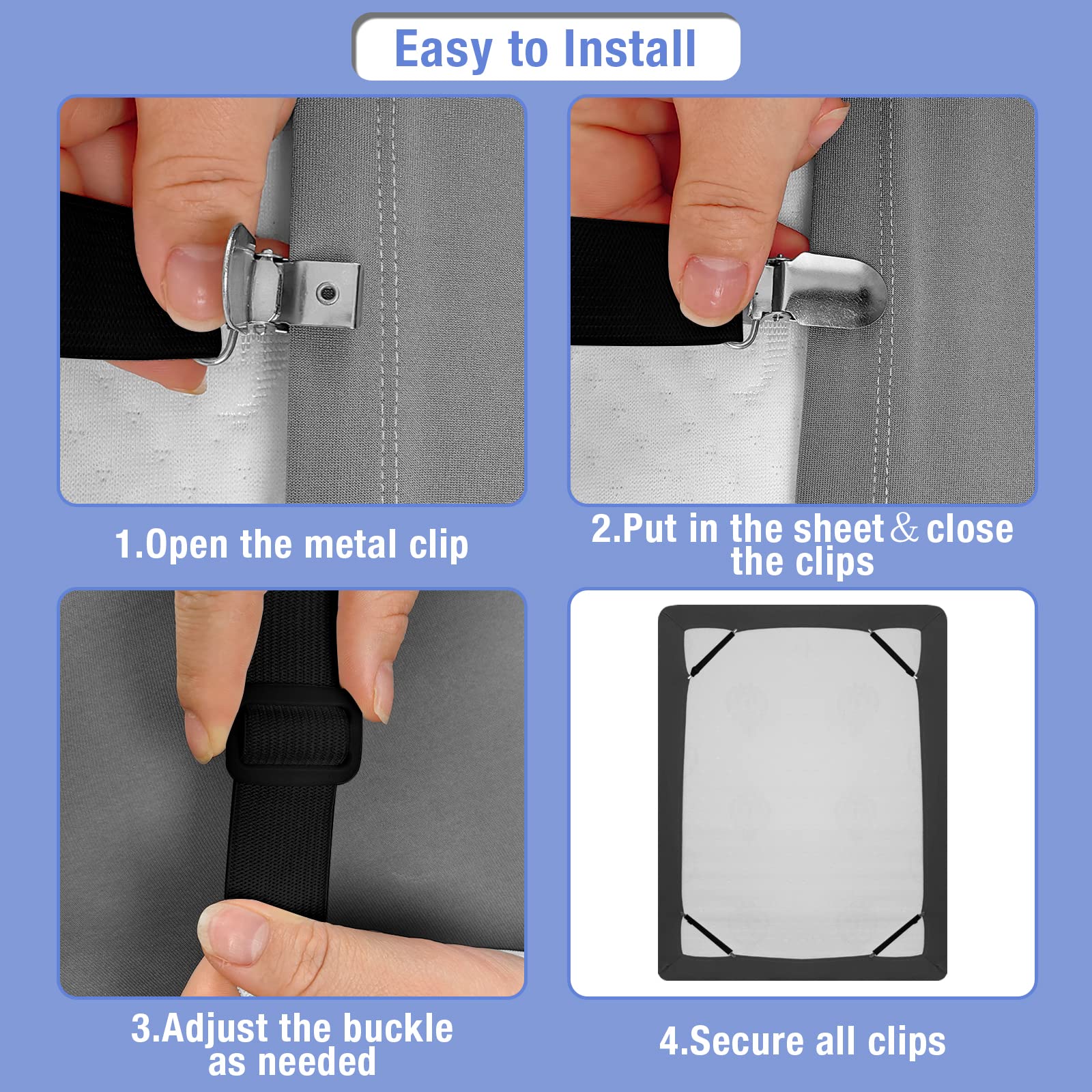 Pinces de lit élastiques – Maroc Clip Drap Housse Attaches De Draps Réglables , Lot De 12 Attaches élastiques Attache Drap Housse Attaches élastiques pour draps de lit. - Test et Avis Pinces réglables : ces attaches de drap de lit peuvent s'adapter à la plupart des tailles de draps de lit pour un alignement à chaque fois. Doux et durable : fabriqués en silicone souple, ces porte-draps adhèrent en toute sécurité à vos draps sans les endommager, même en cas de mouvement pendant le sommeil