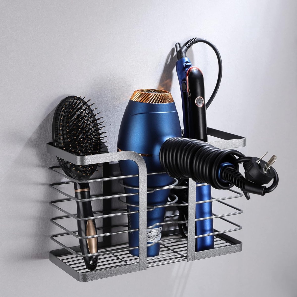 Rangement Seche Cheveux Hsyadazi Support Mural Universel Pour Sèche-cheveux Sans Perçage - Avec Un Trou De Rangement Pour Prise - Pour Salle De Bain, Salon - Noir Support De Sèche Cheveux Le support pour sèche-cheveux convient aux murs lisses tels que le carrelage, le marbre, le verre, le bois et le métal. Fabriqué en acier inoxydable 304 de haute qualité, ce support innovant allie robustesse et esthétique, vous permettant de garder votre sèche-cheveux à portée de main tout en préservant l’harmonie de votre espace 【Tampon de protection en silicone】 Équipé d'un coussinet de protection en silicone, il peut protéger efficacement le sèche-cheveux des rayures et des chocs. Compatible avec la plupart des sèche-cheveux : il dispose de compartiments séparés pour les sèche-cheveux et les fers à lisser pour un rangement propre et pratique Refroidissement efficace : le support de sèche-cheveux protège des rayures avec un coussin en silicone et assure une meilleure dissipation de la chaleur grâce à sa conception ouverte THATSRAD Porte Sèche Cheveux Porte Sèche Cheveux et Lisseur sans Perçage Porte Sèche Cheveux Mural Adhésif Support Seche Cheveux Mural Support Seche Cheveux et Lisseur avec 1 Colle, Argent Polyvalent : idéal pour les salles de bains, les chambres, les salons de coiffure et les hôtels pour ranger les outils de coiffure bien rangés. 【Installation stable et facile】 Support mural pour sèche-cheveux sans perçage avec autocollants auto-adhésifs, grande surface adhésive, forte adhérence et aucun risque de chute. Assurez-vous que le mur est sec et propre avant l'installation. Le silicone souple s'adapte étroitement au sèche-cheveux, empêche le sèche-cheveux de glisser.