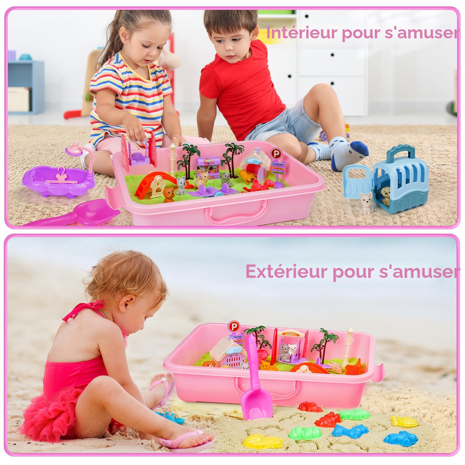 La recette du sable magique Maison Truc de Nana Il offre une expérience apaisante et thérapeutique à chaque jeu. Bac à Sable Magique Sensoriel Enfant Bac A Sable Sur Pied FRUSE Sable Jouet Magique De Mer,Jouets Sensoriels Avec 1 KG De Sable,12 Jouets D'animaux Marins,Moules De Sable,Bac A Sable Avec Couvercle,Sable Jouet Pour Enfant De 3 à Sable Magique Enfant Solde 🐾 Set de sable pour animaux domestiques Notre boîte sensorielle est remplie de sable à jouer pour enfants, 4 chiens, 1 chat, une maison pour animaux, une cage de transport, 2 gamelles, un toboggan, une balançoire, 2 boîtes à nourriture, une baignoire, une pelle à sable, des clôtures, 2 arbres, une tour et plus encore ! Sa taille pratique le rend idéal pour les déplacements : qu'il s'agisse de rencontres de jeu, de pique-niques ou de jardin – vos petits restent occupés en déplacement et ont toujours leur sable préféré à portée de main. Associez-le à nos autres thèmes (licornes, sirènes, dinosaures) pour plus d'aventures ! Avec notre jouet sensoriel, les enfants peuvent construire leur propre monde de conte de fées dans le bac à sable. Améliorez la créativité des enfants Joellfuner Sable magique pour enfants, sable cinétique avec 1 kg, sable magique et 4 chats 34 animaux domestiques, litière, jeux sensoriels, anniversaire, Noël, cadeau pour enfants 3 4 5 6 ans Le doux sable Wonder et les mignons figurines animales offrent des heures de plaisir, tandis que les enfants apprennent à construire un chez soi pour les animaux et à les nourrir – pédagogique et amusant. 📦 Bac à sable stable avec couvercle Le bac à sable avec couvercle verrouillable est robuste et évite la perte de sable. Ces pièces variées offrent des jeux infiniment créatifs – qu'il s'agisse de construire, de soigner ou de jouer à des rôles avec les adorables animaux.