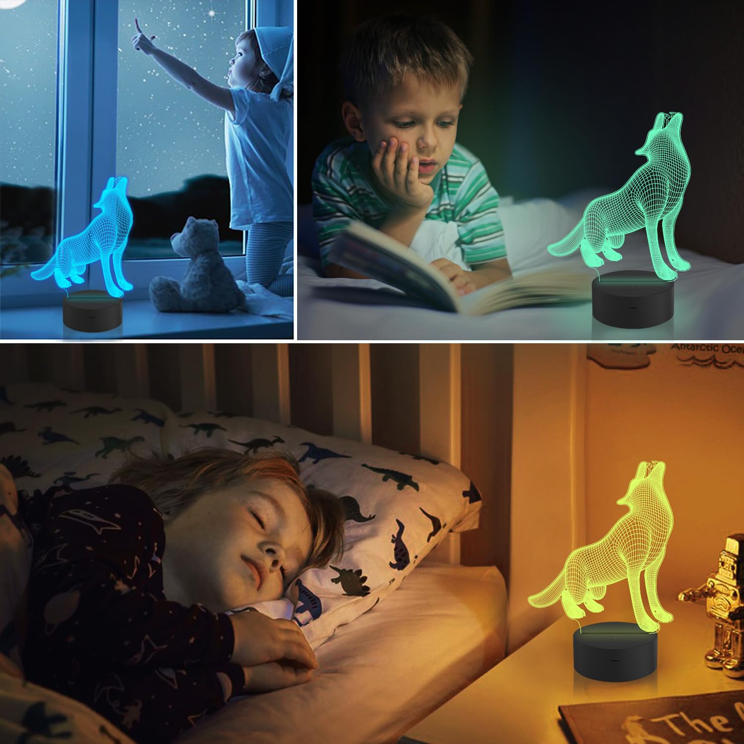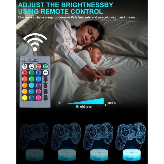 Ressemble à une véritable veilleuse 3D dans l'obscurité ou prendre une photo, la vue est forte! Présentation du produit Lampe de manette de jeu 3D CooPark Jeu 3D Illusion Lampe pour enfants, 16 couleurs changeantes avec télécommande, décoration de 59 [Effet 3D créatif] - La lampe de jeu est une feuille fabriquée avec une machine laser pour montrer l'illusion 3D visuellement étonnante Multi-couleurs et télécommande] Game controller 3D Bureau Veilleuse dispose de 16 changements de couleur, un changement de couleur avec un bouton, rouge, vert, bleu, jaune, cyan, violet, blanc et 7 dégradés. Câble USB connecté à un PC ou à un adaptateur domestique, facile à charger. C'est également une lampe décorative pour chambre à coucher, chambre de bébé, chambre d'enfant, salon, bars, cafés, hôtels, cinéma, clubs, attractions touristiques et atmosphère de restaurant Lampe Led 16 Couleurs Télécommande Jeux Cadeaux, CooPark Jeu 3D Veilleuse (3 Motifs) Avec Télécommande 16 Changement De Couleur + Fonction Veilleuse Enfant Télécommande 16 Couleurs Et 4 types de clignotants (flash, stroboscope, fade, smooth) et options de luminosité. Cadeaux parfaits comme lampe 3D créative optique pour les garçons, les filles et les amateurs de consoles de jeu Grand design de plaque acrylique anti-rayures / bords lisses pour une utilisation plus sûre de bébé / LED avec lumière douce, uniforme et non scintillante et dimmable, sans danger pour les yeux des enfants, apportez un bon sommeil, vos enfants ou vos amis, je vais adorer ce cadeau cool Un éclairage doux crée une atmosphère agréable pour que votre bébé puisse bien dormir Lampe Cheval Veilleuse 3D Cheval Veilleuse, 3 Motifs Avec Tu00e9lu00e9commande, 16 Cheval Enfant Double alimentation : la lampe de nuit 3D Game controller peut être alimentée par 3 piles AAA ou un port USB. La télécommande peut régler 16 couleurs, 4 modes de changement de couleur et la luminosité. Idéal pour accompagner votre enfant à dormir et se lever la nuit