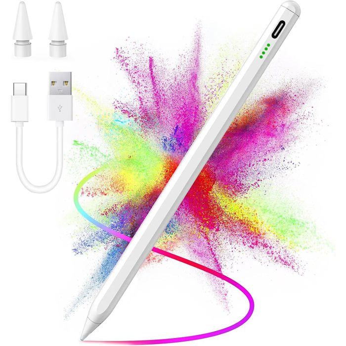 Le stylet peut être fixé magnétiquement sur le côté de la tablette (seul un petit nombre d'appareils prend en charge cette fonction, vous devez vérifier si votre propre appareil a du magnétisme). La fonction d'inclinaison de ce stylet pour tablette vous permet de changer l'angle du stylo pour créer différentes largeurs de lignes et nuances, ainsi que d'ombrer vos dessins et croquis de manière artistique comme avec un crayon graphite et donner vie à vos créations., Design magnétique. La fonction Palm Rejection vous offre une expérience d'utilisation confortable. Détection d'inclinaison et pointe sensible du stylet : le stylet AOGbdvb pour iPad est équipé de la dernière puce intelligente AI 2025, la pointe est précise et solide, donnant au stylet iPad une précision parfaite des pixels, une haute sensibilité, pas de points d'arrêt et des retards imperceptibles, et vous pouvez être créatif. Le stylet de téléphone portable dispose de quatre voyants, un voyant lumineux indique 2 % à 25 % de charge. Sensibilité à l'inclinaison et rejet de la paume : le stylet Hastraith iPad utilise la technologie de détection de pression d'inclinaison, qui peut ajuster dynamiquement l'épaisseur de la ligne en fonction des différents angles d'inclinaison du côté du stylo Stylet Pen pour iPad, Stylus Pen Active Pen Pointe Fine avec Palm Rejection, Pointe d Remarque : le stylet pour iPad n'est pas sensible à la pression. Le ressort est poli pour éviter les rayures sur l'écran de l'iPad, et le AOGbdvb est fabriqué à partir d'un matériau polymère de haute qualité qui peut résister à plus de 200 000 frappes. En même temps, le stylo pour iPad dispose de deux aimants intégrés qui peuvent être fixés à l'iPad avec fonction d'adsorption, ce qui le rend plus portable et moins perdu. Aucune connexion Bluetooth n'est nécessaire, il s'éteint automatiquement après dix minutes d'inactivité. Accessoire IPad Dessin Note Stylet Pour Ipad (2018-2022) Avec Sensibilité D'Inclinaison Et Haute Précision, Compatible Avec Sans Connexion Bluetooth Présentation du produit Stylet pour iPad 2018-2025 avec charge rapide Palm Rejection Sensibilité d'inclinaison Stylet tactile pour iPad 11/10/9/8/7/6,Air 3 Modèles compatibles : aucune connexion Bluetooth nécessaire Cela ne prend que environ 13 minutes pour charger complètement l'appareil et il peut être utilisé environ 9 heures d'utilisation continue, avec un temps de veille d'environ 180 jours. Remarque : le stylet pour iPad n'est pas sensible à la pression., Sensibilité à l'inclinaison. Lorsqu'il n'est pas utilisé, il s'éteint automatiquement après 10 minutes pour économiser de l'énergie. Le stylet peut exécuter des instructions plus fines que les doigts, telles que la peinture, les croquis, le gribouillage ou le marquage d'un document. Charge rapide USB-C et voyant lumineux. Commodité et durabilité : nos stylos ne sont pas connectés par Bluetooth, il suffit de doubler le dessus pour l'allumer/l'éteindre et l'utiliser.