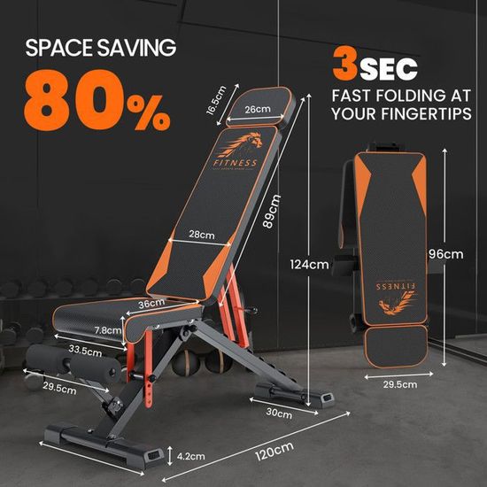 Portable et peu encombrant : pliez-le en un clin d'œil – seulement 0,1 m³ pour jeter. Plongez dans un entraînement intensif, en sachant que ce banc de musculation vous soutient (et votre renforcement musculaire) et maintient chaque répétition stable et sûre. Un appareil d'entraînement, des possibilités infinies. Ajustement parfait ? Vous pouvez donc vous installer et commencer à transpirer plus tôt. Utilisation polyvalente de la remise en forme : que vous soyez un débutant qui trouve son rythme, un professionnel qui cherche à développer ses muscles ou que vous vous réhabilitez avec précaution, ce banc de musculation s'adapte. Banc de musculation multifonctionnel | Pliable | Réglable | Support de barre | 148x180x110,5cm | 250kg | Pressfit | Mobiclinic Laissez tomber les trucs en changeant les équipements d'entraînement. Dimensions clairement indiquées : déplié (125 cm × 43 cm × 116 cm) ou plié (83 cm × 42 cm × 23 cm), avec une hauteur d'assise de 45 cm – pas de conseils. Ce banc de musculation développé couché réglable aussi bien en incliné qu'en décliné permet de travailler tous les muscles des pectoraux avec efficacité Achat DH FitLife Banc de musculation pliable réglable, banc incliné et banc plat pour développé couché, musculation du dos et abdominale, banc d'entraînement multifonction pour l'entraînement à domicile Sautez les trucs de plusieurs outils ; laissez-le entraîner chaque étape de votre voyage de fitness. Entraînez tous les groupes musculaires, des pectoraux aux muscles fessiers, et créez des programmes d'entraînement complets qui s'adaptent à vos objectifs comme adaptés. Achetez GENIXFIT Banc de musculation réglable, pliable et mobile, avec dossier réglable en 7 positions et 3 positions assises, banc incliné pour développé couché à la maison, charge maximale : 400 kg (motif CONFORT ERGONOMIQUE : un dossier rembourré respirant, des cônes haute densité résistants à la transpiration et des embouts antidérapants réglables travaillent ensemble pour vous envelopper. Votre salle d'entraînement ? Il est partout où vous en avez besoin. Dites adieu aux craintes instables lors du levage de poids lourds. Garantie de qualité : certifié UE, soutenu par une garantie gratuite de 2 ans et un support technologique à vie.