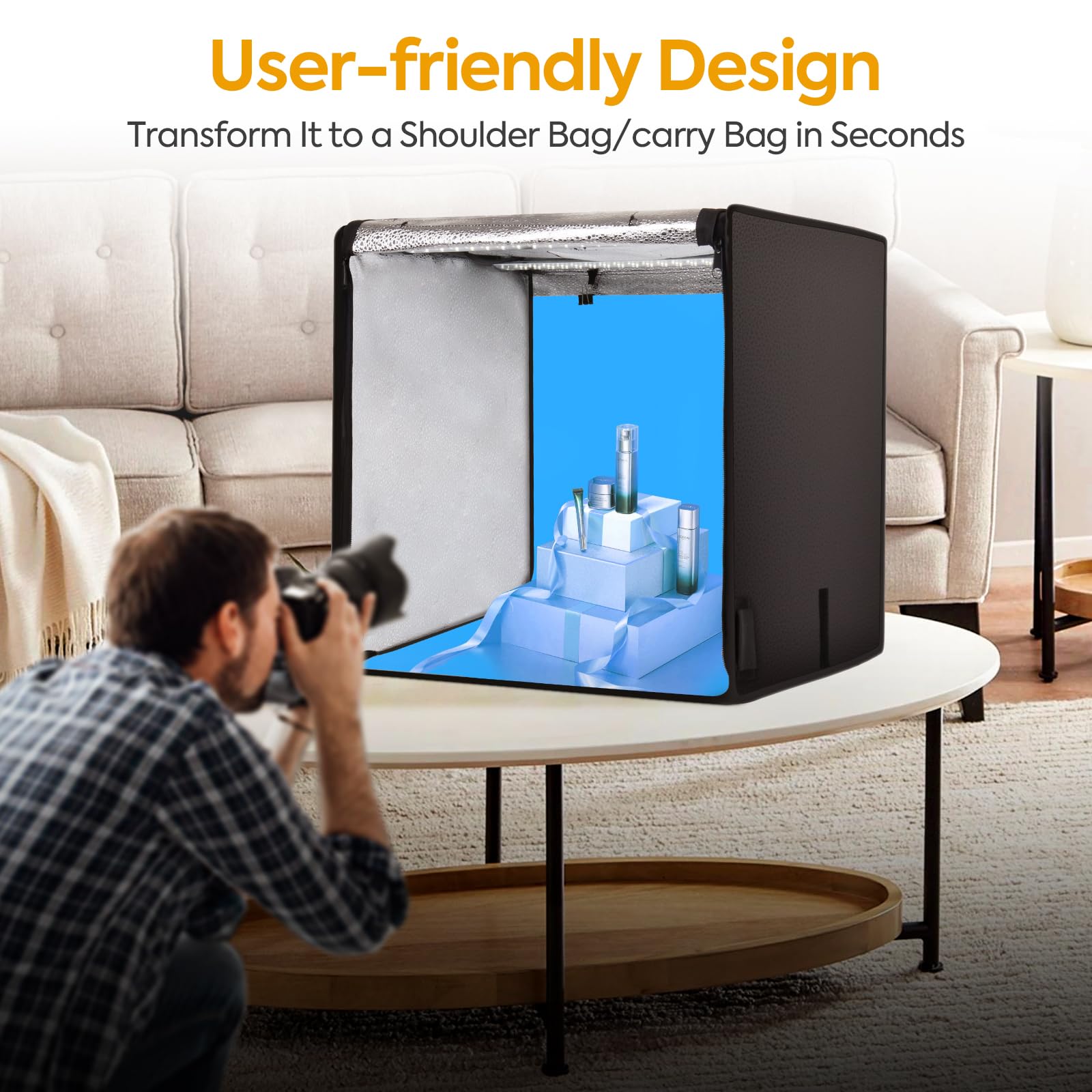 🌈【Boîte photo avec 6 fonds de couleur】 Équipé de 6 fonds en vinyle PVC lisses et imperméables (blanc, noir, orange, vert, rouge, bleu), de sorte que vous pouvez facilement changer les couleurs de fond et créer différentes scènes de prise de vue selon vos besoins pour améliorer votre photographie différents styles. 3 Farbtemperaturen, erfüllen Ihre unterschiedlichen Bedürfnisse der Fotografie 6 arrière-plans de couleur répondent à vos différents besoins de photographie Nous offrons une garantie de 12 mois et un service client amical à vie. Avec câble USB et sac de rangement étanche, sans support., Pas de vis. Box Photo BOLLUMA Boîte De Lumière Photo Studio 90x90x90cm, Portable Tente De Shooting Pliable Avec 4 Couleurs De Fonds, Light Box Cube Lumineuse Pour Produit Photographie Studio Photo Portable Pour E-commerce Produit La fenêtre de prise de vue horizontale avant et le trou supérieur vous permettent de prendre des photos avec le meilleur effet visuel sous différents angles de prise de vue. 📨Contenu de la livraison : 1 boîte de studio photo portable (avec câble), 6 fonds de couleur, 1 diffuseur de lumière, 1 sac de transport, 1 support de téléphone. Indice de rendu des couleurs ≥ 95 L'IRC de notre tente de tir est supérieur à 95, ce qui rend l'image plus colorée et plus lumineuse et montre le motif d'enregistrement réel et vivant. 📸【Boîte photo pliable 】 Le design pliable unique tout-en-un vous permet de l'assembler en 3 secondes, il est facile à utiliser et à transporter à tout moment. 10 niveaux de luminosité à intensité variable & 3 températures de couleur] Avec 120 perles lumineuses LED SMD de haute qualité, la tente photo dispose de 3 modes de température de couleur : lumière froide, lumière naturelle, lumière chaude Boîte lumineuse de qualité supérieure Mit 120 Stück LED-Brot, das genügend Helligkeit für Fotoshootings bietet. Prise de vue multi-angles Le kit de boîte à lumière vous offre plus d'angles de prise de vue. Utilisez un diffuseur blanc (fourni) pour rendre votre effet photo plus naturel. Contenu : 1xLeuchtkasten1xTelefonständer1xDiffusortuch6x Bunte Kulisse 10 niveaux de luminosité à intensité variable & 3 températures de couleur] Avec 120 perles lumineuses LED SMD de haute qualité, la tente photo dispose de 3 modes de température de couleur Lightdow Boîte à lumière de studio photo 40,6 x 40,6 x 30,5 cm ✨【High CRI & Multi-Angle Light Tent】 Indice de rendu des couleurs élevé (95+) et pas de flash, produisant des lumières plus lumineuses et plus douces, Lightbox rend vos photos plus naturelles et avec une excellente texture.