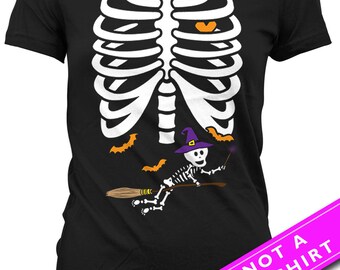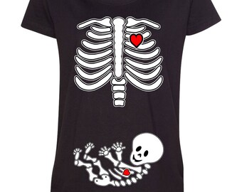 T-shirt Grossesse Fête Halloween Acheter En Ligne Déguisement Squelette Enceinte Femme | Costumalia By Halloween Femme Enceinte Déguisement halloween pour femme enceinte : 10 idées Exemples de Déguisements d'Halloween pour Femmes Enceintes Sorcière Enceinte : Une robe noire ample, une cape de sorcière, un chapeau pointu et un maquillage vert peuvent créer un look de sorcière enceinte mystérieux et élégant Léger, Coupe classique, manche à double couture et ourlet à la base Déguisement imprimé squelette femme Halloween : Deguise-toi, achat de