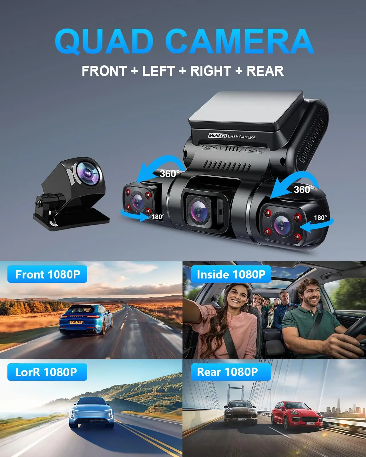 GOHHDL Caméra embarquée 2K avant et arrière 4 canaux, 360 degrés 3 pouces, caméra de voiture avec contrôle APP, vision nocturne infrarouge, enregistrement en boucle, accéléromètre, aide au stationnement, surveillance du stationnement 24 heures Il y a 6 jours · Conçue pour éliminer les angles morts, cette caméra embarquée 4 canaux 1080p avec vue à 360° enregistre chaque détail, idéale pour la conduite quotidienne, le covoiturage ou les trajets en voiture. Vidéo ultra-haute définition 4K. Connectivité Wi-Fi 5G rapide. Surveillance de stationnement 24h/24 Caméra embarquée 4 canaux 2K ------ L'enregistreur de conduite à 4 canaux comprend une caméra avant, deux caméras intérieures et une caméra arrière, qui permettent de surveiller l'avant, l'arrière et l'intérieur du véhicule. Enregistrement en boucle et capteur G ------ L'enregistrement en boucle écrase les vidéos les plus anciennes lorsque la carte SD est pleine et garantit l'enregistrement continu de la caméra embarquée. Lorsque la voiture est en marche arrière, l'image à l'écran affiche la ligne d'aide au stationnement afin de s'arrêter en toute sécurité. Dashcam Voiture GOHHDL 2K Avant Arrière 4 Canaux, 360 Degrés Dashcam Voiture Sans Fil Il offre différents modes d'affichage à l'écran et fournit des vidéos en 2K+1080P+1080P+1080P La vidéo de l'accident est verrouillée et ne sera pas écrasée Aide au stationnement et moniteur de stationnement ------ La caméra de recul affiche la vue arrière de la voiture en diffusant des flux vidéo haute résolution dans le rétroviseur. Vision nocturne et luminosité réglable ------ Avec 4 LED IR de vision nocturne intégrées, la caméra orientée vers l'intérieur peut capturer avec précision le conducteur et les passagers même lorsque l'intérieur de la voiture est complètement sombre, ce qui est parfait pour les conducteurs de covoiturage tels que Uber, Lyft et Taxi. Dashcam 360 Hodozzy Dashcam 4 Canaux Avant, Intu00e9rieure Et Arriu00e8re Camu00e9ra Embarquu00e9e Voiture, 3 Pouces U00c9cran 1080P Dashcam Avec Carte, Moniteur, Capteur G, Enregistrement Boucle, Vision Nocturne Voiture Dash Cam L'écran tactile ajuste l'exposition pour un visionnage confortable de jour comme de nuit Moniteur de stationnement 24 heures et capteur G]Dash camera voiture Le capteur G sauvegarde automatiquement la vidéo en cours lors d'un choc, évitant son écrasement par l'enregistrement en boucle
