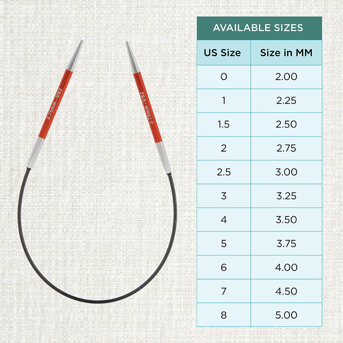 Principaux points forts · Taille. 2,75 mm · Marque. KnitPro · Matériau. Aluminium · Couleur. Assorti · Facteur de forme. Circulaire · Nombre de pièces. 1 Les câbles flexibles sans pli reposent à plat et sont faciles à ranger. Aiguilles Circulaires KnitPro Zing 22.5cm 2.75mm Aluminium Aiguilles à Tricoter Et Crochets Aiguilles Aluminium Légères Les aiguilles circulaires fixes Zing sont disponibles dans une variété de longueurs et de tailles de couleurs spécifiques. Variété de longueurs et de tailles : les aiguilles circulaires fixes KnitPro Zing sont disponibles en différentes longueurs et tailles à code couleur, ce qui permet de trouver facilement l'aiguille parfaite pour n'importe quel projet. Câbles flexibles et sans pli : les câbles sont flexibles, plats et faciles à ranger, ce qui permet un tricotage sans tracas et un rangement propre. Conçues à partir d'un métal de haute qualité léger, ces aiguilles à tricoter au toucher doux vous assurent un tricot confortable.La gamme d'aiguilles à tricoter 25cm présentent deux aiguilles de taille différentes (une de 4,5cm et l'autre de 7cm) afin de vous faciliter le tricot de petits diamètres tels que les manches, les... Aiguilles circulaires KnitPro Zing avec câble Tailles N° 2.00 LongueurDuCâble 40 cm Une jointure lisse garantit l'absence d'accrochage. Les aiguilles circulaires fixes Zing sont fabriquées en aluminium léger de qualité supérieure qui offre une glisse en douceur pour tous les fils. Les tailles clairement visibles sont imprimées au laser pour une longue durée de vie.