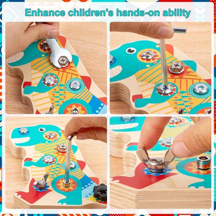 Tournevis Enfant Planche à Vis En Bois Pour Enfants, Jouet De Motricité, Jouet éducatif Jouet Motricité Fine Vis Tournevis 【APPRENTISSAGE PAR LE JEU - ÉPANOUISSEMENT EN FAMILLE】Bien plus qu'un simple amusement, ce jeu pédagogique favorise l'autonomie et la confiance en soi de l'enfant lorsqu'il accomplit ses missions. Ce jeu de puzzle stimule l'intelligence des enfants en améliorant leur motricité fine, en favorisant la coordination œil-main et en augmentant leur capacité à... Ce jeu aide votre jeune enfant à reconnaître les formes et les couleurs. Laissez votre enfant recréer les motifs sur les cartes en tournant les vis à la bonne position Son design attractif d'une pelleteuse jaune décorée encourage le jeu de rôle imaginaire. C'est une merveilleuse opportunité de partager des moments de complicité : parents et enfants jouent ensemble, ce qui renforce les liens familiaux. HABA- Boîte à Outils pour Enfants, 302921 Sa taille permet de l'emporter facilement partout. 【7 VIS ET 3 OUTILS - DÉVELOPPE LA MOTRICITÉ FINE】Ce jeu de motricité fine comprend 7 vis colorées et 3 outils adaptés aux petites mains (tournevis et clé). Une activité manuelle captivante qui renforce la musculature des doigts et prépare à l'écriture. 【UNIVERS CRÉATIF DINOSAURE ET CHANTIER - JEU IMAGINATIF】Inspiré par l'univers des dinosaures et des engins de chantier, ce jouet en bois pour enfants de 2 ans captive immédiatement l'attention. L'atelier de bricolage parfait pour les tout-petits curieux ! 【FORMAT COMPACT - IDÉAL POUR LES DÉPLACEMENTS】Avec ses dimensions compactes (22x13x4 cm), ce jeu de motricité est le compagnon idéal des voyages. Les pièces sont de taille généreuse pour une préhension facile et pour prévenir tout risque. Il stimule la coordination œil-main, la dextérité et la logique.