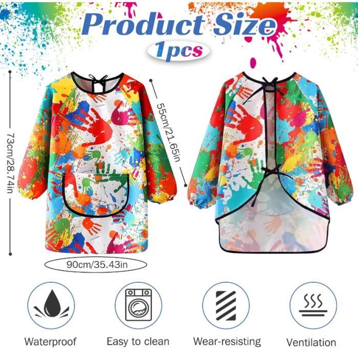 Il peut stimuler l'intérêt des enfants pour le dessin et les aider à inspirer leur créativité tout en les gardant propres 2 Pièces Tablier de Peinture Blouse Peinture Enfant Peinture Matériaux imperméable de haute qualité]Notre tablier de peinture pour enfants est fabriqué en polyester lisse et imperméable, facile à nettoyer, sèche rapidement et est réutilisable 【Conception pratique】Les manches longues du tablier pour enfants sont conçues avec des poignets élastiques. 【Matériau de haute qualité】Le tablier de peinture est fabriqué en polyester imperméable de haute qualité, sûr, non toxique et inodore, robuste et durable, doux et léger, confortable à porter, réutilisable, lavable en machine et à la main Blouse de peinture enfant est fait de nylon polyester de haute qualité,respirant,sans BPA,facile à nettoyer,à séchage rapide,réutilisable,résistant aux taches n... Les manches longues couvrent bien les bras et les vêtements de votre enfant, évitant ainsi la peinture et la saleté. 【Blouse Peinture Enfant】Vous recevrez 2 tabliers de peinture pour enfants, longueur des manches : 49cm, poitrine : 87cm, longueur : 54cm, design unisexe, convient aux garçons et aux filles âgés de 3 à 8 ans (Hauteur 80 à 100 cm), 2 tabliers peuvent répondre à vos besoins quotidiens de changement Tablier école Cuisine Dessin Tablier Peinture Enfant 2 Pièces Blouse Peinture Enfant Imperméable Blouse Enfant Ecole Longues Avec Poches Pour Ecolier Cuisine Coloriage Bébé 3-7 Ans Blouse Manches Longues école