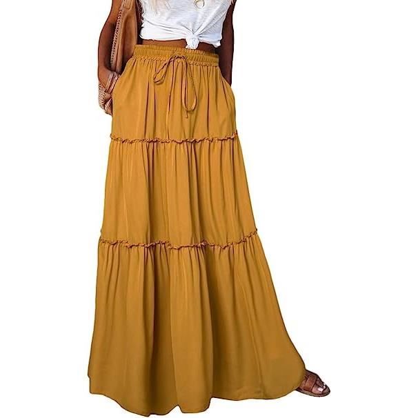 GURU SHOP Jupe Brodée Au Genou - Jupe Chic Colorée - Mandala Rétro - Jaune - Pour Femme - Coton, Jaune, 46