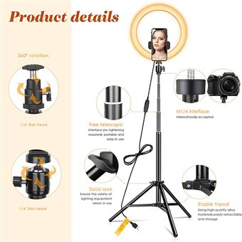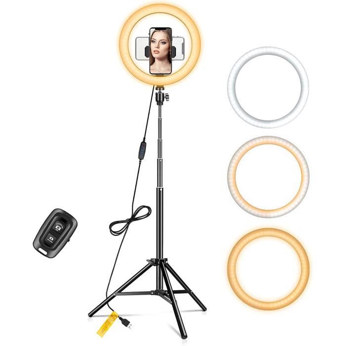 Vous pouvez également atteindre complètement la station jusqu'à une taille de 153 cm. Il y a 5 jours · Entre les ombres disgracieuses et le manque de luminosité, le rendu final peut rapidement devenir décevant. Cet anneau lumineux, accompagné de son trépied, se présente comme la solution idéale pour garantir un résultat professionnel en toute simplicité, nous l’avons mis à l’épreuve Anneau lumineux de 25,4 cm avec trépied pour téléphone portable, support LED pour trépied de téléphone portable, anneau lumineux avec 40 modes RVB, anneau lumineux pour selfie avec télécommande sans fil pour YouTube, selfie, maquillage, photographie La station a été fabriquée en acier de haute qualité, sa robustesse et sa longueur ont été garanties. Support de poignée et angle réglable à 360 ° : cette lampe annulaire est équipée d'un support de main compatible avec la plupart des modèles de smartphones et vous offre plus de possibilités de réglage et de confort. 【Utilisation multifonctionnelle】 La lampe annulaire est une lumière multifonctionnelle qui peut être utilisée pour les selfies, l'enregistrement vidéo, le streaming en direct, les tutoriels de maquillage, la photographie de produits et d'autres scènes. Il est équipé d'un câble USB et utilise un réseau 5 V 2 A. Anneau lumineux à LED 10,2 pouces avec trépied et support téléphone Kit La longueur pliée est de seulement 38 cm. Photographie à distance et alimentation via USB : la lampe annulaire est équipée d'une télécommande pratique, de sorte que vous pouvez facilement prendre des photos et des vidéos via la télécommande sans saisie manuelle. 【Station pliable et stable】 La lampe annulaire de 25,4 cm est couplée à une station pliable professionnelle. Anneau LED: la ring light parfaite pour les iages de beauté Anneau Lumineux 10" Ring Light Avec Trépied Grand, Selfie éclairage YouTube Anneau lumineux à selfie à intensité variable : la lumière annulaire statique dispose de 3 modes de couleur (lumière chaude 3000 K, lumière blanche chaude 4500 K et lumière blanche 6000 K) et 37 modes d'éclairage RVB, chaque mode d'éclairage est disponible avec 10 niveaux de luminosité.