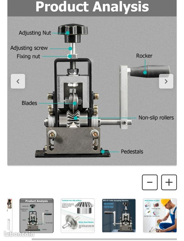 Le cadre en aluminium renforcé garantit une utilisation fiable et durable. Découpe Nette : La lame en acier 65Mn de cet outil de dénudage conserve son tranchant pour des coupes nettes à chaque utilisation. Léger et Portable : Cette dénudeuse est petite et légère, facile à transporter. Pince À Dénuder Les Câbles Coaxiaux Manuel De Dénudage Des Câbles Emmenez-la chez vous, dans votre hangar, dans votre atelier ou sur votre chantier, et transformez vos fils usagés en précieux trésors partout où vous en avez besoin. Dénudage facile : cette machine à dénuder manuelle de Creworks dispose d'une manivelle facile à manipuler pour alimenter sa lame en acier et enlever l'isolation des fils de rebut Denudeur De Cable Electrique CREWORKS Dénudeur De Câble Électrique Manuel Avec 5 Lames 6 Machine A Denuder Le Cuivre LARGE APPLICATION : Les 4 canaux d’alimentation séparés de cette dénudeuse de câble portable couvrent toutes les largeurs de fils de cuivre de 16 à 4 gauge (1,5-25 mm), vous permettant de manipuler facilement et en toute sécurité toutes les tailles les plus courantes