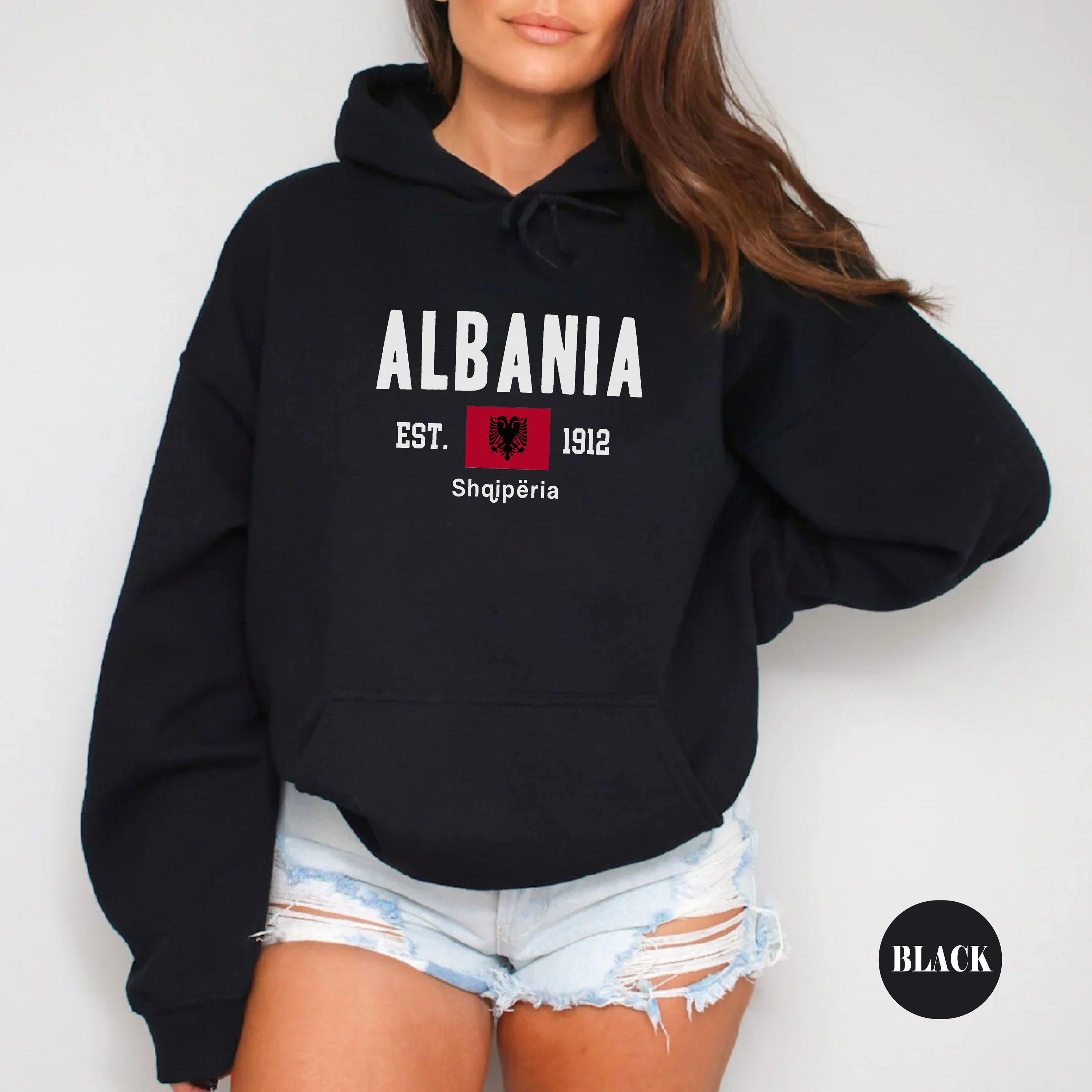Sweat Capuche Albanie Drapeau Albanais Couleurs Albanie Sweat à Capuche Sweat-shirt Chaud Motif Pays Un superbe design pour les fans albanais dont le cœur bat sur la poitrine pour l'équipe d'Albanie. Ce produit du drapeau albanais est créé par Shqiperi Shqiperia Albania Flag Supporter Apparel Sweatshirts et sweats à capuche homme et femme sur le thème Drapeau National Albanie Designs d'artistes Molleton Échanges gratuits Fabrication responsable 241 g, coupe classique, col tissé Albana Jacket Albana Shqpëra Hood Sweater Hoode Albana Kosovo