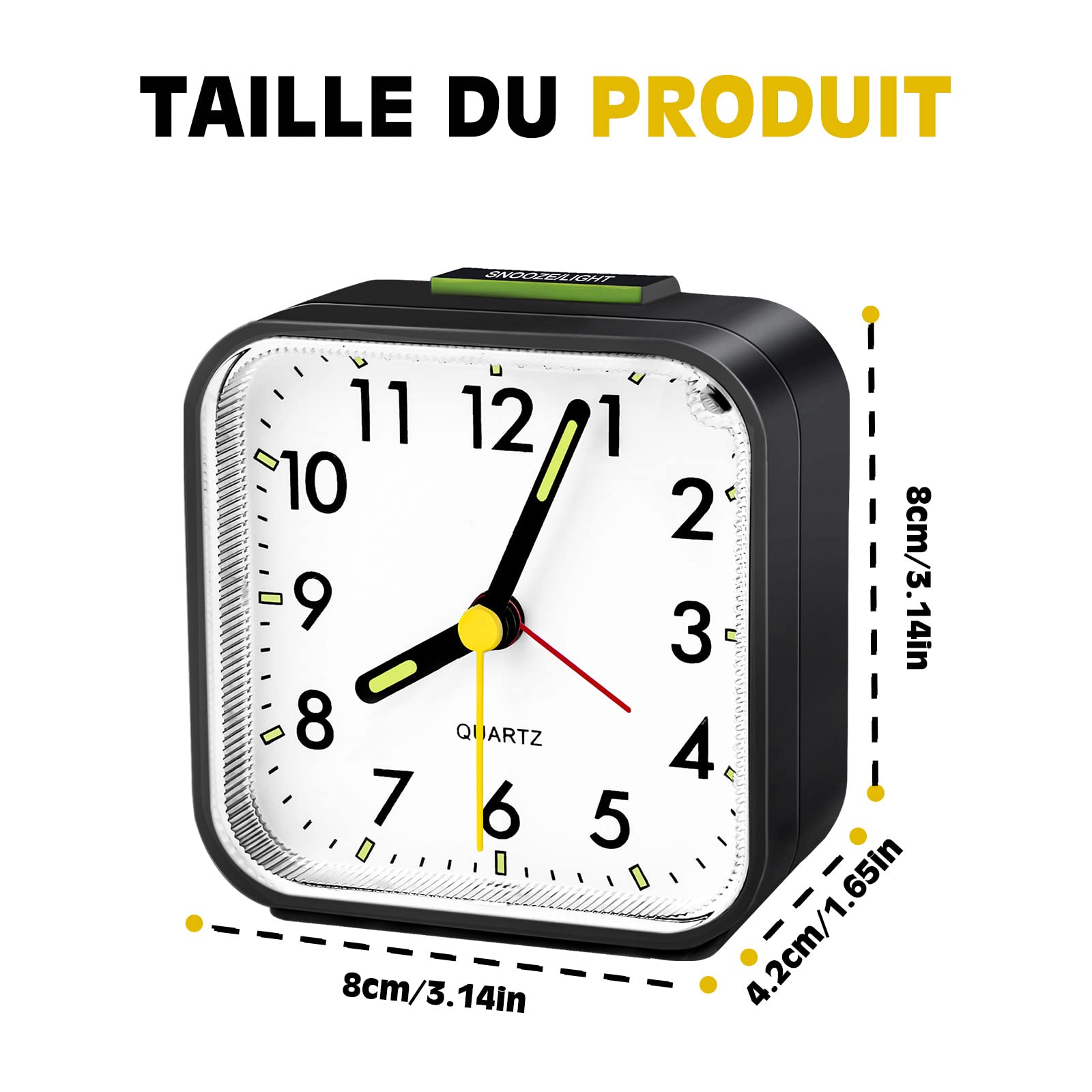 Réveil De Voyage Portable Vicloon Réveil Matin à Piles,Mini Réveils De Voyage Réveil Enfant With Réveil Voyage Muet Silencieux, petit et léger pour les voyages, bon choix pour la décoration, parfait comme cadeau spécial, pas à chaque moment pour garantir un bon sommeil et un meilleur environnement de travail Ce petit réveil carré Ogquaton est parfait pour ceux qui détestent le bruit des tic-tac la nuit ! Complètement silencieux, il vous réveillera en douceur sans vous stresser Alarme Sablonneux au sens propre pilote réveil mécanique avec tic tac verbe anxiété Tou