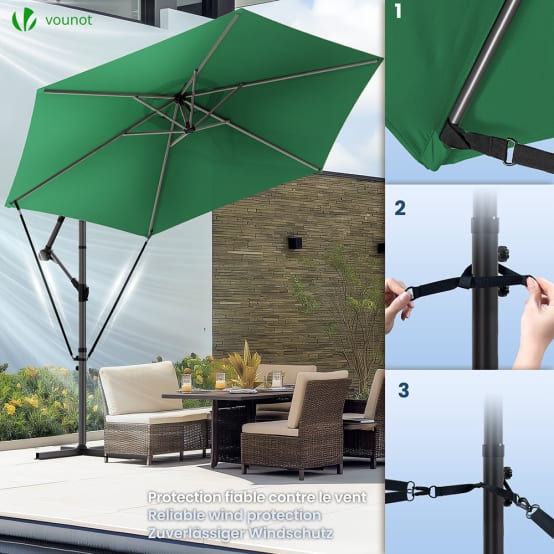 La housse de parasol de jardin s'adapte parfaitement, même en cas de vent fort. La housse de parasol protège votre parasol de manière fiable contre la pluie, le gel, la neige et d'autres intempéries. Que ce soit un parasol de balcon, un parasol rond ou un parasol petit, la housse de parasol maintient votre parasol en meilleur état. Ne convient pas aux parasols Emballage coupe-vent : le cordon d'ourlet de qualité supérieure au bas de la housse de parasol imperméable permet une fixation sûre même en cas de vent fort Housse Parasol 4smile Housse De Protection Pour Parasol - Résistante Aux | FindTheDeal Housse Polyester Imperméable Veuillez noter : la housse ne convient pas aux parasols ! Ajustement parfait - La housse pour parasol convient parfaitement aux parasols ronds standard d'un diamètre allant jusqu'à 200 cm et aux modèles rectangulaires jusqu'à 200 x 125 cm. En outre, elle empêche la formation de moisissures et prolonge considérablement la durée de vie de votre parapluie. La housse de parasol est particulièrement résistante aux intempéries Les clients sont satisfaits de la fonctionnalité, de la protection et du rapport qualité-prix de cette housse pour parasol. Ils la décrivent comme parfaite, impeccable et remplissant très bien son rôle Fabriqué en 100 % polyester, la housse de protection pour parasol est particulièrement résistante, durable et imperméable. Pour une fixation sûre en cas de vent, la housse de parasol dispose d'un cordon d'ourlet de qualité supérieure qui empêche le glissement. Pour une protection durable et un aspect soigné de votre parasol, le parasol de qualité supérieure de 4smile est le choix idéal. Grâce aux propriétés robustes de la housse de parapluie, la housse de parasol est résistante aux intempéries, aux UV et respirante. Avec la housse de protection pour parasol résistante aux intempéries de 4smile votre parasol reste protégé de manière optimale. Fabriqué en 100 % polyester, la housse de protection pour parasol est particulièrement résistante, durable et imperméable 4smile Housse de protection pour parasol rond jusqu'à 200 cm, carré Cette housse de parasol est également idéale pour les parasols de balcon rectangulaires ou petits.