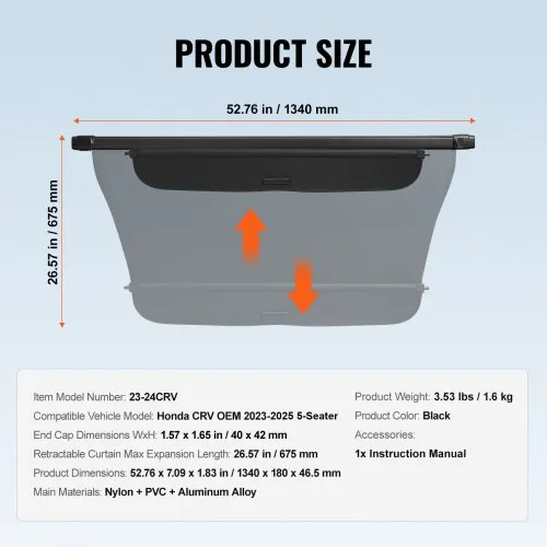 Ajustement spécifique au véhicule: Pour Honda CRV 2012–2016 Panier de congélateur coffre rétractable VVIKIZY - Rose Vert - PP - 40 ~ 52 cm - Maison Avantages: Le couvre-espace de chargement protège vos objets personnels des regards indiscrets. Contenu de colis: 1 couvre-espace de chargement rétractable Pas de souci que les objets tombent du cache de coffre en conduisant., . Adaptation spécifique au véhicule : Le cache de coffre convient pour Honda CRV 2012-2016., ., Fonctionnalité : Le pare-soleil de sécurité rétractable protège les objets privés des radiations et des regards curieux, divise la zone du coffre en deux zones fonctionnelles, les objets pratiques comme les mouchoirs, les oreillers peuvent être placés sur la couche supérieure pour un accès facile, pour maximiser l'utilisation de l'espace et garder le coffre propre., ., Caractéristiques du produit : Étagère de coffre arrière rétractable en alliage d'aluminium épaissi et en toile haute densité, le pare-soleil possède une capacité de charge élevée et une résistance au stress., ., Comment installer : Fixation directe aux trous réservés de la voiture pour une installation facile. Veuillez mesurer la distance de montage des deux barres comme indiqué dans l'image du produit pour vous assurer que le produit peut être monté dans le coffre avant l'achat. Motoforti Housse de coffre de voiture rétractable pour Honda Détails du produit: Couleur: Noir Motif: Fibre de carbone Longueur barre 1: 136,5 cm (L) Longueur barre 2: 109 cm (L) Le cache-bagages rétractable en alliage d'aluminium renforcé et en toile haute densité est extrêmement résistant et robuste. Détails du produit: Type: Couvre-espace de chargement avec protection visuelle Installation sur le véhicule: Arrière, coffre Matériau: Alliage d'aluminium, toile Avantage:Le cache-tonneau anti-regard pour bagages protège les objets privés des radiations et des regards curieux, divise la zone du coffre en deux zones fonctionnelles, les objets pratiques comme les mouchoirs, les oreillers peuvent être placés sur la couche supérieure pour un accès facile, afin maximiser l'utilisation l... Housse de coffre rétractable pour Honda, protection de coffre étanche améliorée pour Honda CRV 2023-2025 5 places, protection de coffre arrière résistante aux UV avec alliage d'aluminium et texture cuir PVC Mesure manuelle, des écarts de 1 à 3 mm sont possibles.