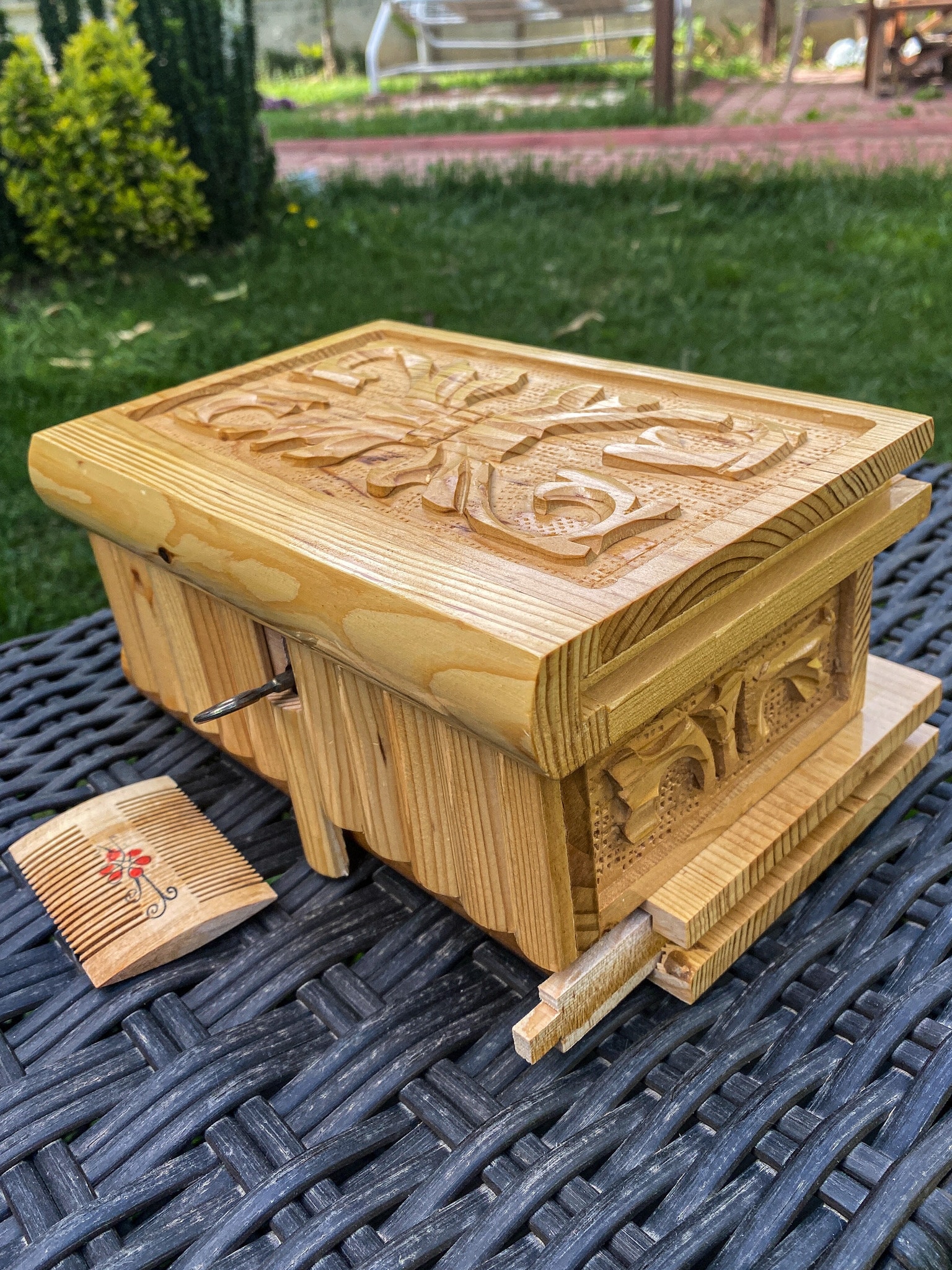 Dimensions : 22 x 13 x 12,5 cm - Dimensions intérieures : 19 x 9 x 5 cm Grande boîte à serrure secrète en noyer avec partie de commutation sur la boîte. 100 % noyer sculpté à la main. Dimensions : 30 x 21 x 16,5 cm. Dimensions intérieures : 21 x 12 x 9 cm. Poids Découvrez le mélange parfait de sécurité et d'artisanat avec notre boîte à puzzle faite à la main, fièrement fabriquée en Turquie. Meilleure boîte à bijoux, boîte à puzzle, boîte à compartiments secrets pour vous, vos proches. Fait à la main de belles choses pour vous L'intérieur spacieux est doublé en feutre rouge pour contenir vos précieux trésors. La luxueuse doublure en feutre rouge protège vos articles tout en ajoutant une touche d'élégance. Boite à Bijoux Originale Tiroir Secret | Avenue du Trésor La boîte de puzzle gardera vos secrets en sécurité pour toujours sous serrure et clé., Fabriqué en Turquie. Conçue pour protéger vos trésors les plus précieux, cette boîte magnifiquement conçue dispose d'un mécanisme de verrouillage astucieux que seul le déterminé peut résoudre. Offrez quelque chose d'extraordinaire : un cadeau qui n'est pas seulement une boîte, mais une expérience à chérir pour toujours. Cette boîte à bijoux permet de ranger les bijoux de la famille de mère à petite-fille. L'intérieur spacieux est doublé en feutre rouge pour contenir vos précieux trésors Boîte Boîte à Bijoux Fabriquée à La Main En Bois De Noyer : Boîte à Rangement Bijoux Feutre Rouge Fabriquée à la main avec soin, cette boîte à puzzle est un cadeau de Noël attentionné, une surprise d'anniversaire spéciale ou un cadeau unique pour toute occasion.