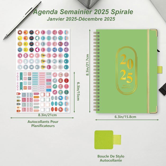 EXPERIENCE de REDACTION de PROCESSUS: Cet agenda utilise 100 documents GSM. Agendas Spirales 2025-2026 L'agenda spirale 2025-2026 vous permet de feuilleter facilement vos pages, pour une organisation fluide et flexible tout au long de l'année Protections d’angle métallique L’écriture sur soie est lisse et ne saigne pas l’encre, vous donnant l’expérience d’écriture finale. Si vous avez des questions ou si vous n’êtes pas satisfait de votre commande, veuillez nous contacter, nous vous fournissons un excellent service RESTEZ CONCENTRE et COMPLETEZ le PLAN : avez-vous beaucoup à faire et dites-vous que vous n’aurez jamais assez de temps pour tout faire? L’ordre du jour n’est pas seulement un simple programme, c’est votre vie. Poche en papier offrant l’espace dont vous avez besoin pour ranger des cartes de visite, des reçus et d’autres petits articles en papier Agenda semainier - 2024 - 1 semaine sur 2 pages - Bureau Vallée La zone de vue globale mensuelle vous aide à marquer les choses et les objectifs importants pour le mois. Les protections d’angle en métal et les sangles élastiques offrent une meilleure protection pour l’agenda SUPERBE DESIGN: Deux pages par semaine, avec un objectif important et une liste de choses à faire chaque semaine. Agenda semainier spirale 2024/2025 - Modèle aléatoire - 18,5 x 22,5 cm - Vendu à l'unité : Ce semainier à spirale 18,5 x 22,5 cm est idéal pour avoir une vue d'ensemble de votre semaine pour votre organisation Agenda Scolaire A5 Autocollants Gumiho Agenda Journalier 2024,Scolaire Semainier -21,3 × 14,7cm- (Janvier à Décembre 2024) Une Page Par Jour,Poche Intérieure,Couverture Rigide (Gris Agenda Scolaire Avec Poche Papier 100GSM, écriture lisse sans tache d’encre, design plat pour une écriture facile