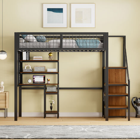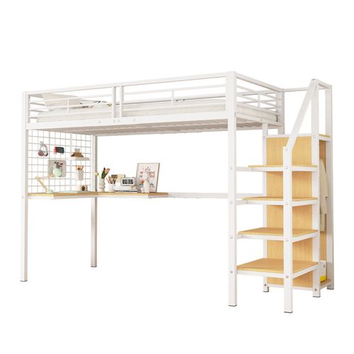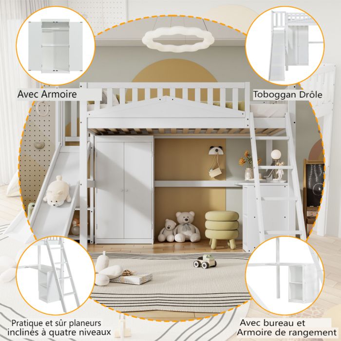 L'association du cadre en fer et des éléments en bois lui confère un aspect moderne et robuste. Luonians Lit Mezzanine Enfant/ado en Fer 90x200 avec Table et Armoire,lit superposé Enfant,échelle latérale avec Main Courante,Cadre de lit Mezzanine 1 Place,Blanc Naturel Le cadre de lit en fer est une solution pratique et peu encombrante pour les chambres à l'espace limité. Les barrières autour du lit supérieur offrent une sécurité supplémentaire pour dormir en hauteur. Ce lit a subi des tests rigoureux pour garantir sa solidité structurelle et la qualité des matériaux utilisés. 【Lit superposé certifié EN747】 : Ce lit superposé certifié EN747 est un produit rigoureusement testé et évalué pour sa conformité aux normes de sécurité européennes. 【Cadre de lit en fer】 : Le lit mezzanine est robuste et durable grâce à son cadre en fer. 90x200cm Lit En Fer, Lit Superposé, Lit Mezzanine, Enfants Et Adolescents Avec Table Et Armoire Blanc Marron 97123299 【Design et couleurs】 : Le lit est conçu en blanc et en couleurs naturelles. Dimensions totales : 254 x 95 x 170 cm Poids total : 63 kg Matelas assortis (matelas non inclus) : 90 x 200 cm (épaisseur du matelas ≤ 13 cm) Capacité de charge : Lit mezzanine : 113 kg Table : 15 kg Placard : 10 kg Caractéristiques Nom du produit : Lit en fer Couleur : Blanc + Naturel Matériau du cadre : Fer, métal, panneaux de particules Matériau des lattes : Fer, métal Méthode d'assemblage : À monter soi-même La structure est-elle interchangeable de gauche à droite? : Non Certifié FSC : Non Nombre de colis : 3 Remarque : Ce produit contient 3 colis. 【Lit mezzanine avec escalier latéral en bois】 : Le lit est équipé d'un escalier latéral en bois qui assure un accès confortable et sûr au lit supérieur. Un lit mezzanine malin pour optimiser l’espace et stimuler le quotidienBesoin de gagner de la place sans sacrifier le confort ni le style ? Ce lit mezzanine 90x200 cm en fer est pensé pour les enfants et adolescents qui veulent un espace bien à eux. En combinant couchage en hauteur, bureau intégré et étagères pratiques, il transforme la chambre en un véritable coin sommeil, travail et... Lit Mezzanine Avec Bureau Zravenna Lit Mezzanine, 90 X 200 Cm, Avec Bureau Et Escalier De Rangement, Superposé, Avec Table Multifonction Et Escalier De Rangement Sûr, Cadre De Lit En Bois De Pin, Blanc Lit Certifié EN747 Ce cadre offre une base solide et résiste aux contraintes.